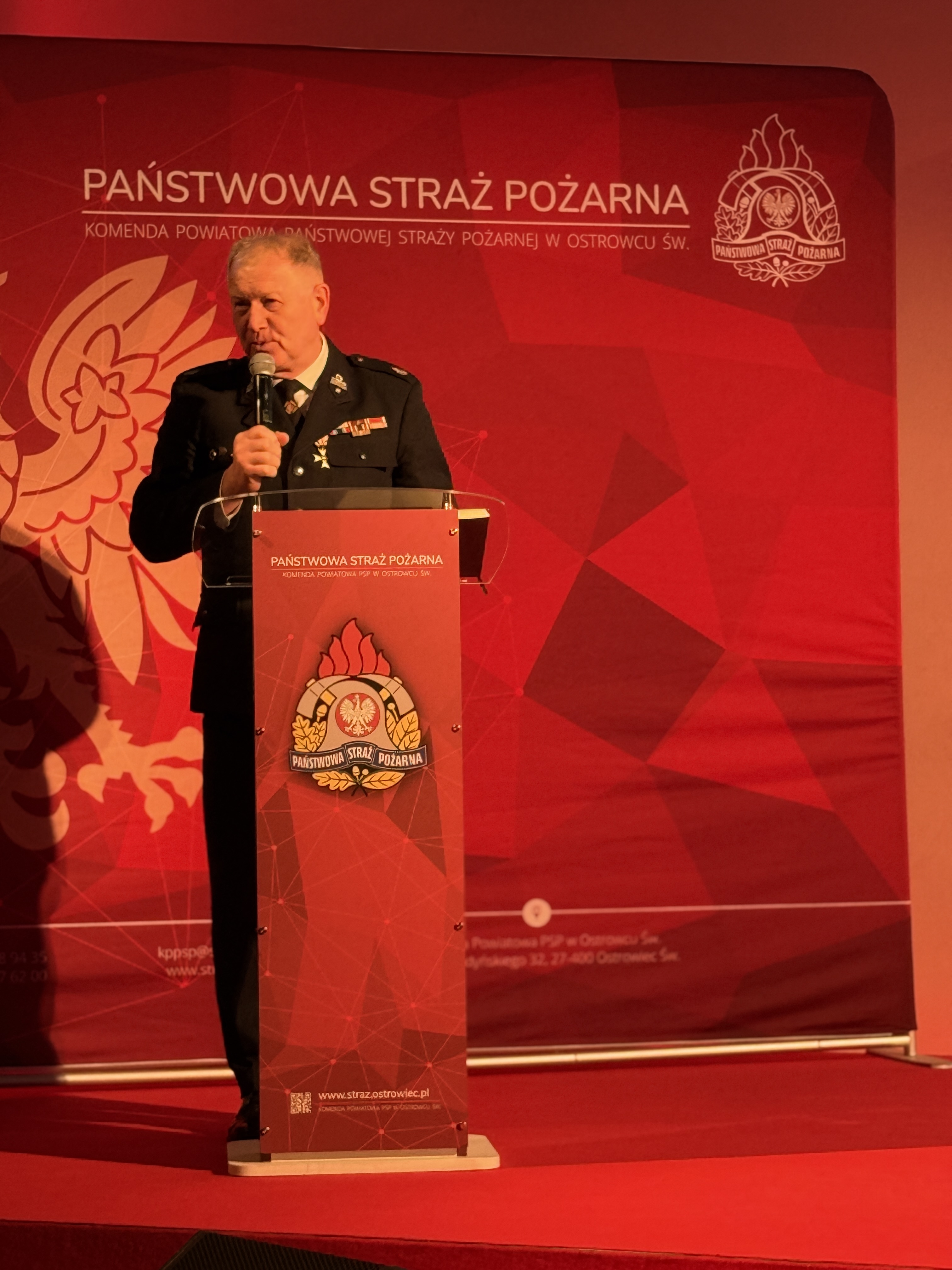 oraz komendantów gminnych OSP, przedstawicieli służb i instytucji współdziałających, a także pracowników i funkcjonariuszy ostrowieckiej komendy.