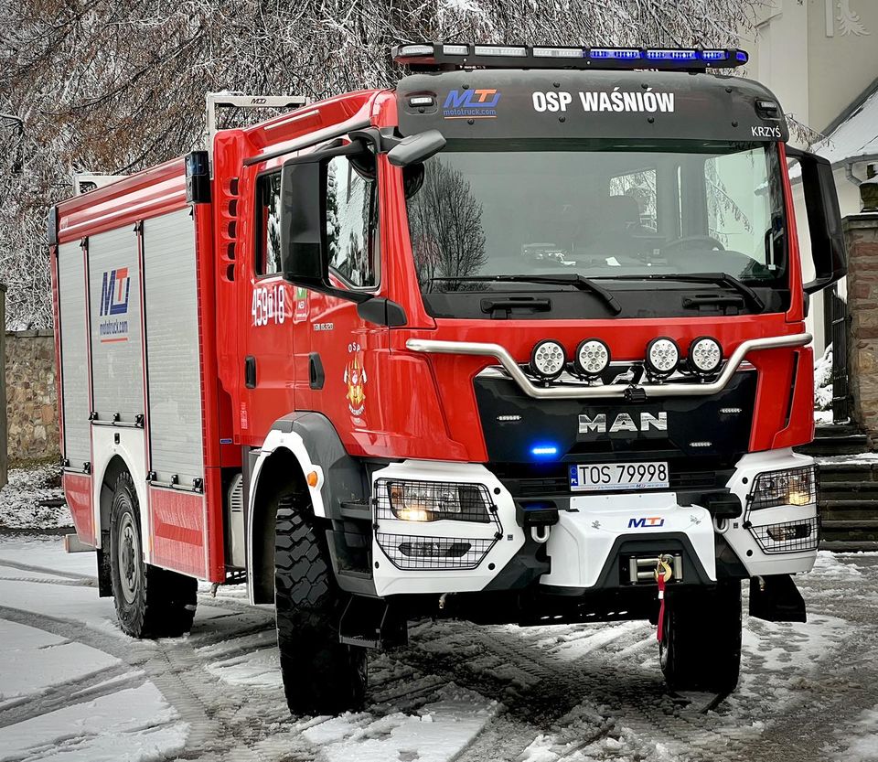 Waśniowscy strażacy mogą pochwalić się nowym nabytkiem w postaci średniego samochodu ratowniczo-gaśniczego GBA 3,5/16 MAN TGM 18.320/MOTO TRUCK. Uroczyste powitanie nowo zakupionego auta odbyło się z udziałem władz gminy, druhów OSP, oraz przybyłych mieszkańców gminy Waśniów. Prezes Zarządu Oddziału Powiatowego Związku OSP RP w Ostrowcu Świętokrzyskim dh. Krzysztof Gajewski w swoim wystąpieniu podkreślił, że dla jednostki jest to wspaniały prezent świąteczny, który wzbogaci potencjał ratowniczy gminy. Pojazd wyposażony jest m.in. w linie szybkiego natarcia, wyciągarkę elektryczną, maszt oświetleniowy, zbiornik na środek pianotwórczy o pojemności 430 l oaz posiada niezawodny napęd 4x4. Całkowity koszt zakupu wyniósł 979 tys. zł. z czego 549 tys. zł. stanowiły środki własne gminy Waśniów, 300 tys. zł. pochodziło ze środków Komendanta Głównego PSP, 100 tys. zł. z WFOŚiGW w Kielcach, i 30 tys. zł. od Samorządu Województwa Świętokrzyskiego.