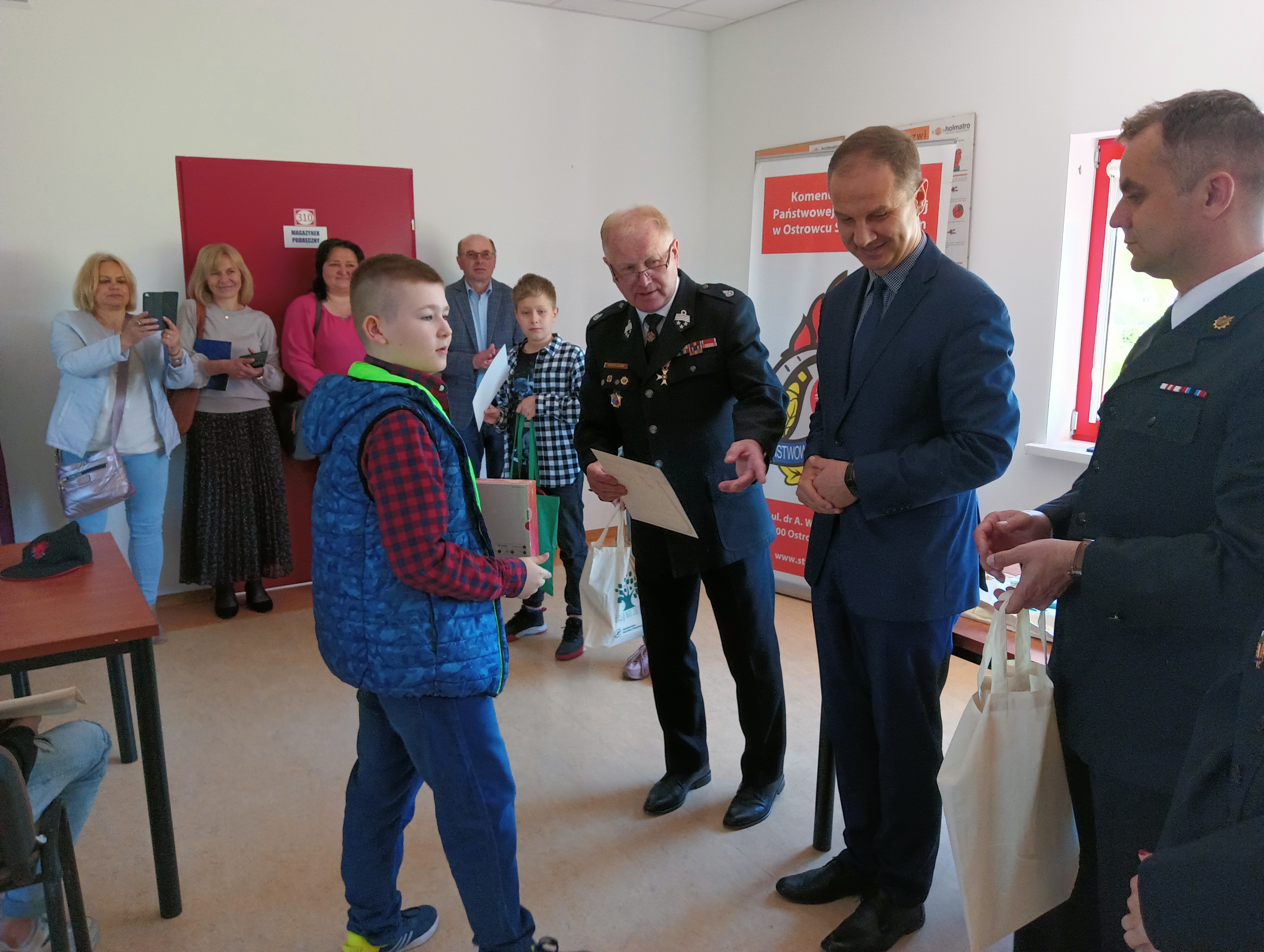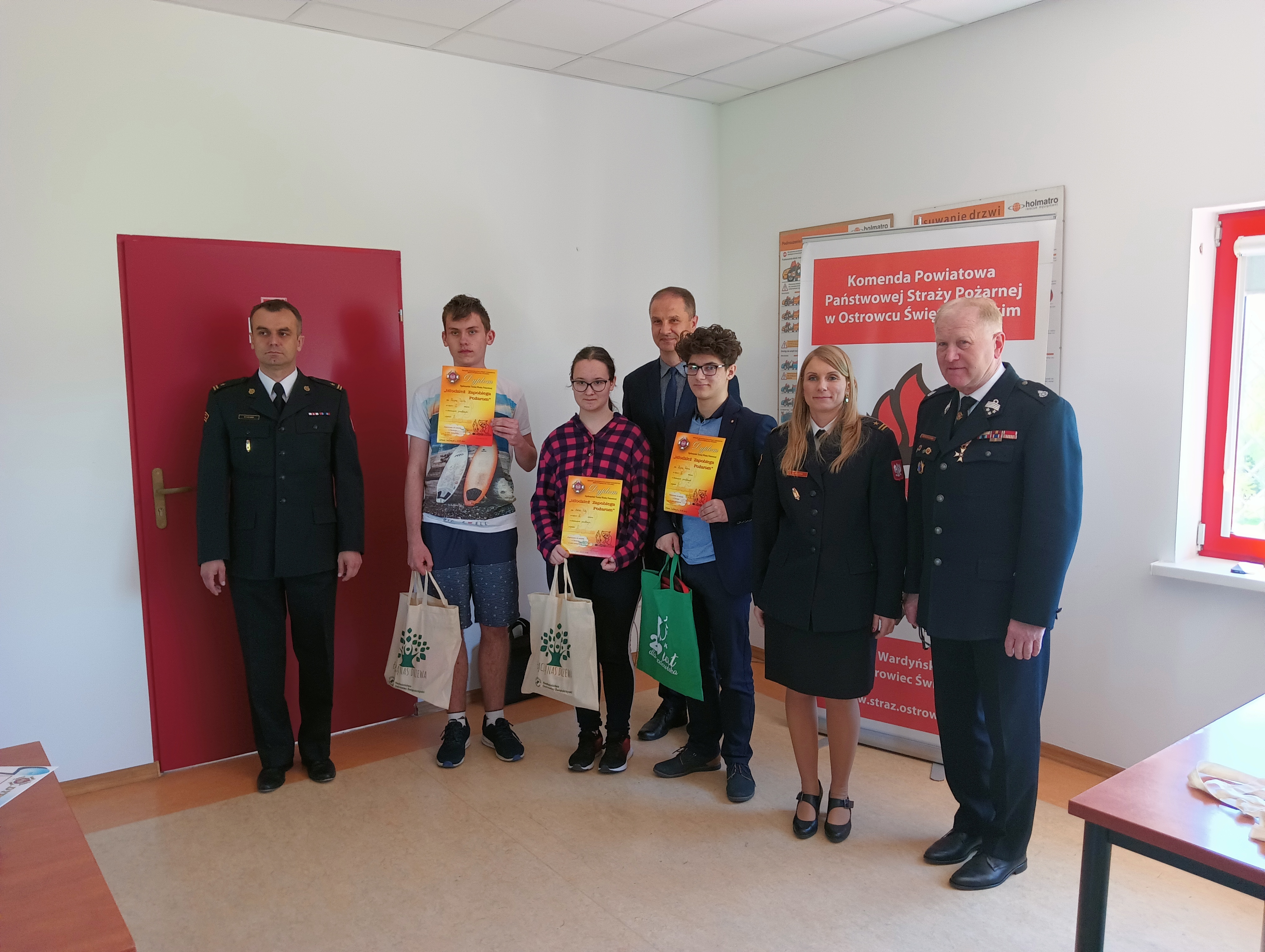 10 maja 2022 r. w na terenie Komendy Powiatowej PSP w Ostrowcu Św. w odbyły się eliminacje powiatowe do Ogólnopolskiego Turnieju Wiedzy Pożarniczej "Młodzież zapobiega pożarom". Była to już XLV edycja konkursu. W zmaganiach z wiedzą pożarniczą wzięło udział 29 uczestników reprezentujących szkoły podstawowe w dwóch kategoriach wiekowych z terenu poszczególnych gmin naszego powiatu. Natomiast w grupie szkół średnich zwycięzca został wyłoniony w etapie gminnym konkursu w Ostrowcu Św. Rywalizacja była ja co roku zacięta, a o zwycięstwie decydowała niewielka różnica punktów w obu grupach wiekowych. Dwóch wyłonionych dzisiaj zwycięzców: Filip Paczoska (PSP Sarnówek Duży) - Grupa I, Kacper Tuźnik (PSP Bodzechów) - Grupa II ponownie swoje umiejętności zaprezentuje w eliminacjach na szczeblu wojewódzkim. A teraz zwycięzcy mogą cieszyć się wspaniałymi nagrodami ufundowanymi przez zacnych darczyńców, którymi w tym dniu byli: