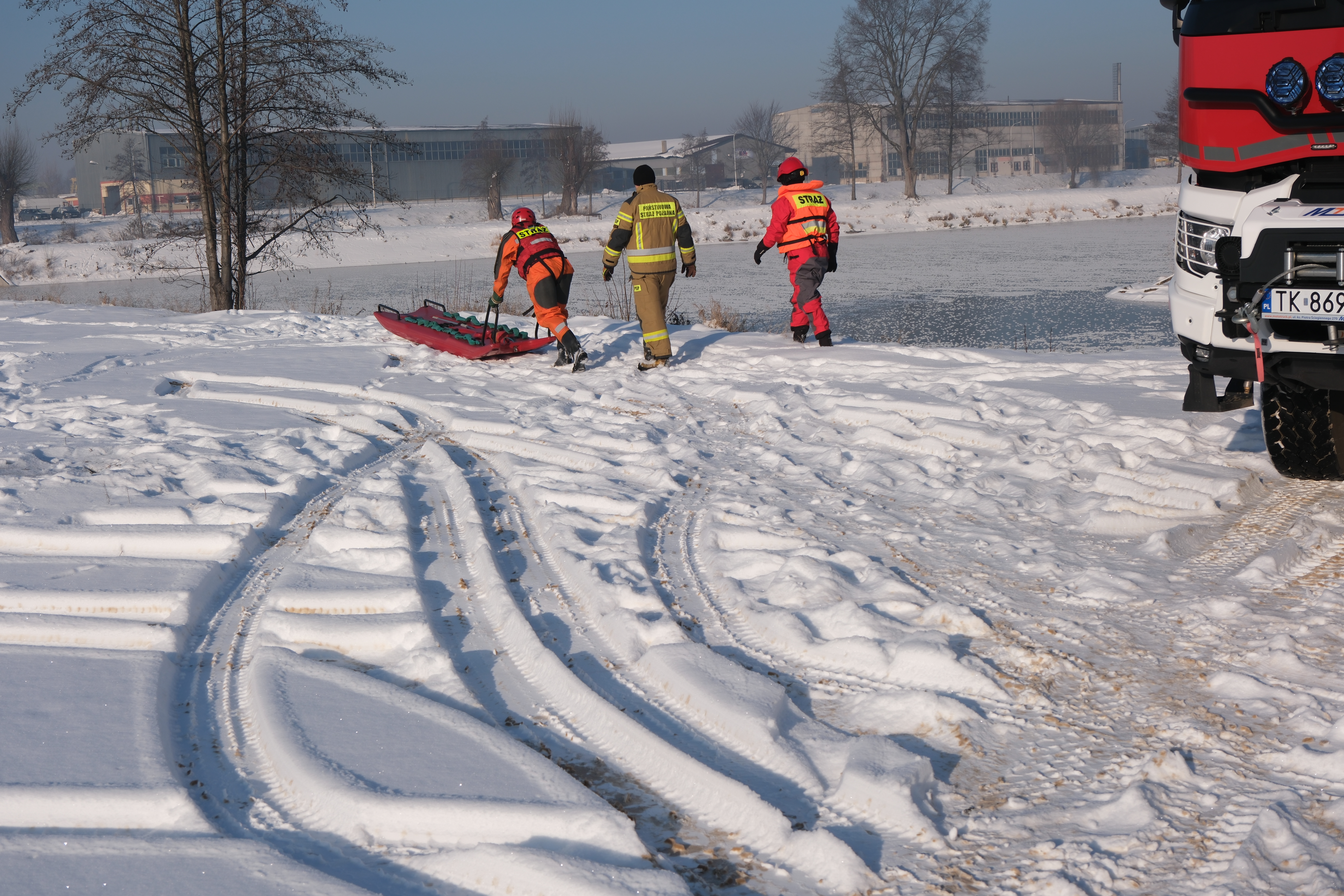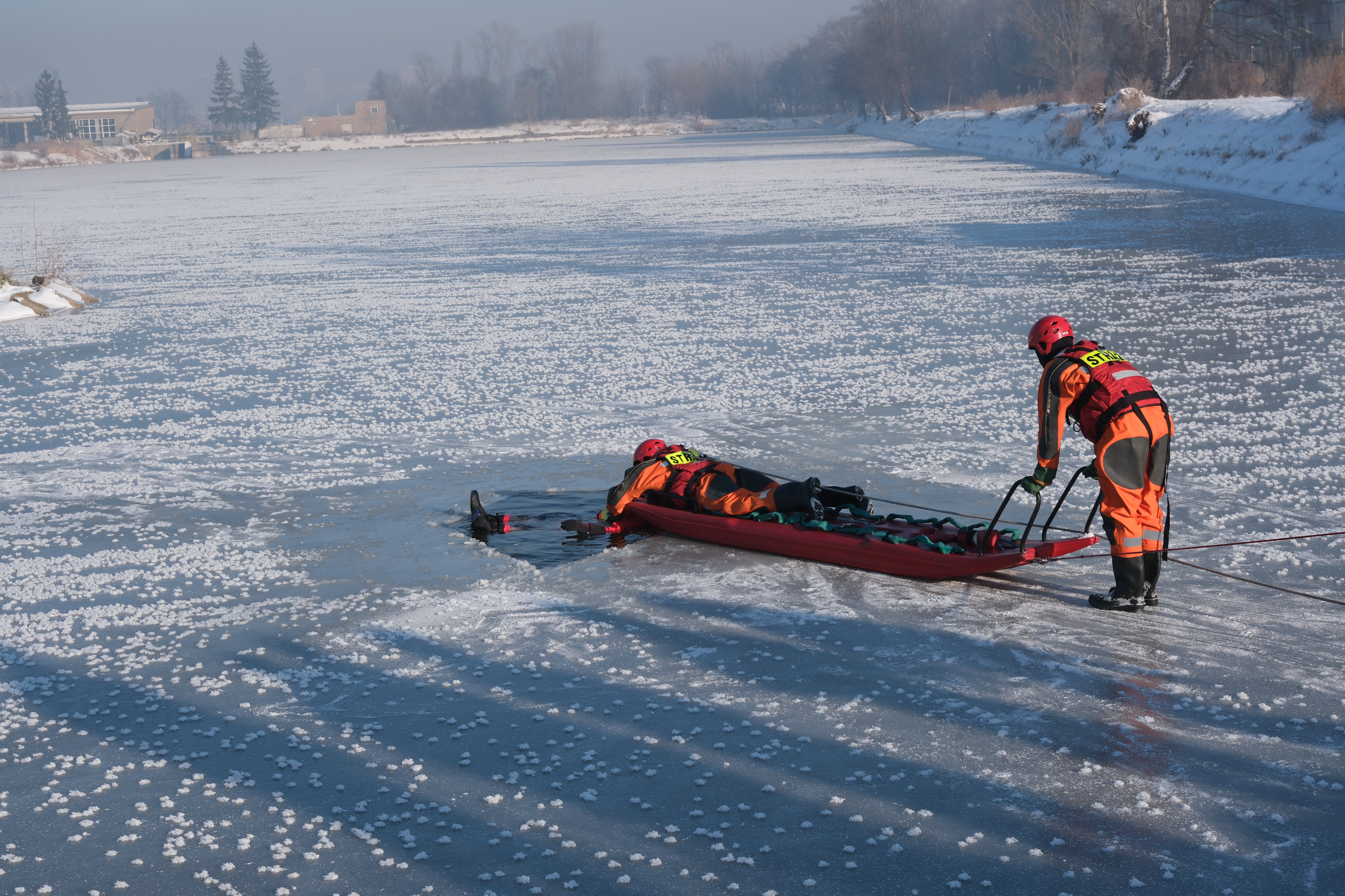 W związku z okresem zimowym jak co roku na początku stycznia ostrowieccy strażacy ćwiczyli techniki doskonalące wydobywanie z wody osób, pod którymi załamał się lód. Tegoroczna aura sprzyja powstawaniu warstwy lodu na akwenach wodnych. Nie możemy wykluczyć, że część spacerowiczów, wędkarzy czy dzieci wejdzie na lód. Pamiętajmy, że grubość lodu na akwenie wodnym nie jest jednakowa na całej jego powierzchni. Może dojść do pęknięcia i zarwania się lodu. I takie założenie przyświecało ćwiczeniom strażaków. Strażacy doskonalili techniki dotarcia do poszkodowanego, a także podjęcia go z wody. Podczas ćwiczeń korzystano z ubrań do ratownictwa wodnego oraz sań lodowych. Ćwiczenia zostały przeprowadzone w Ostrowcu Św. na tzw. stawach hutniczych przy ul. COP.