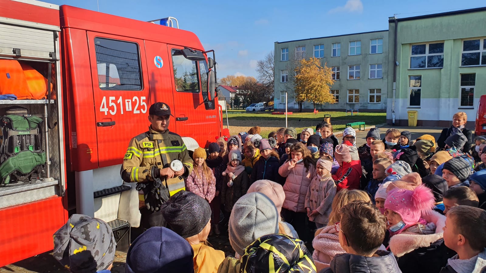 Czujka na straży Twojego bezpieczeństwa! – z taką właśnie misją i przesłaniem ostrowieccy strażacy odwiedzili Publiczną Szkołę Podstawową Nr 1 przy ul. Trzeciaków 35 w Ostrowcu Św. Podczas wspólnego spotkania z dziećmi ratownicy omawiali dlaczego tak potrzebne w naszym domu są czujki tlenku węgla i dymu, jak zachować się w przypadku zagrożenia związanego z "czadem" oraz zagrożenia pożarowego. Młodzi słuchacze dowiedzieli się również, gdzie należy instalować czujki oraz jak takie czujki wyglądają. Nie zabrakło też pokazu sprzętu, który często ratuje życie ludzkie. Ratownicy uczyli zasady pierwszej pomocy, przypominali numery alarmowe, mówili jak uchronić się przed pożarem. Przygotowywane spotkanie wzbudziło duże zainteresowanie i emocje wśród zgromadzonych dzieci, które często zadawały wiele pytań. Mamy nadzieję, że edukacja młodego pokolenie zaprocentuje i w przyszłości nie będą ofiarami zabójczego czadu, lub pożaru własnego mieszkania.
