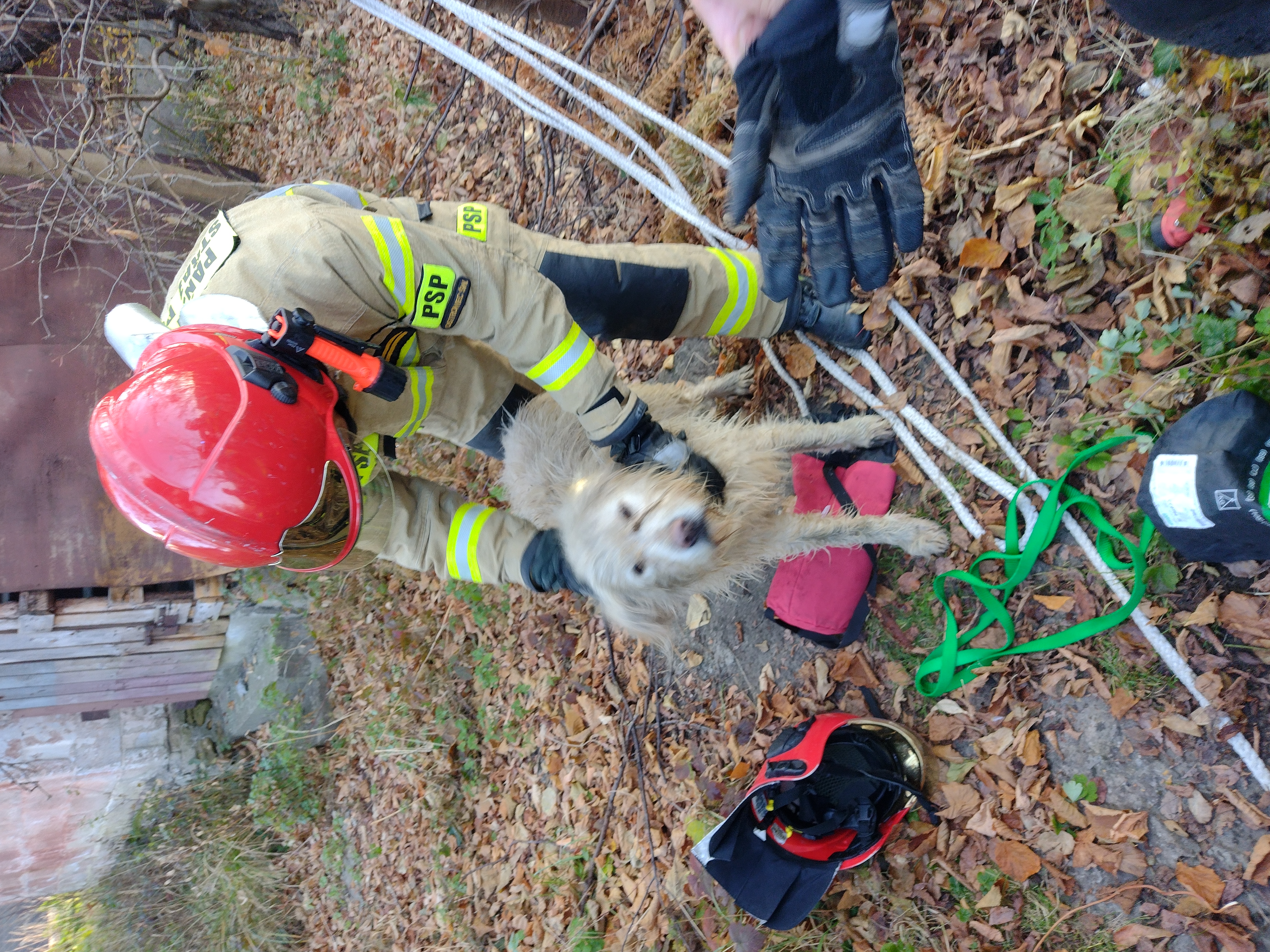 27 października 2021 r. tuż po godzinie 8 do Stanowiska Kierowania Komendanta Powiatowego PSP w Ostrowcu Św. wpłynęło zgłoszenie o uwięzionym psie w przydomowej studni przy ul. Rudzkiej w Ostrowcu Św. Do zdarzenia natychmiast zadysponowano samochód ratowniczo-gaśniczy – 5 strażaków. Po dojeździe na miejsce akcji stwierdzono, że w studni o średnicy 1 metra i lustrze wody na głębokości około 4 metrów znajduje się żywy pies. Działania zastępu w pierwszej kolejności polegały na zabezpieczeniu miejsca zdarzenia, następnie w celu wydobycia zwierzęcia sprawiono drabinę nasadkową po której ratownik zszedł na dół zabezpieczony w sprzęt wysokościowy i aparat powietrzny. Po wydobyciu ze studni pies w pełni sił oddalił się z miejsca zdarzenia. Doraźnie ujęcie wody zostało zabezpieczone przed przypadkowym wpadnięciem przez ratowników. Akcja trwała niecałą godzinę.