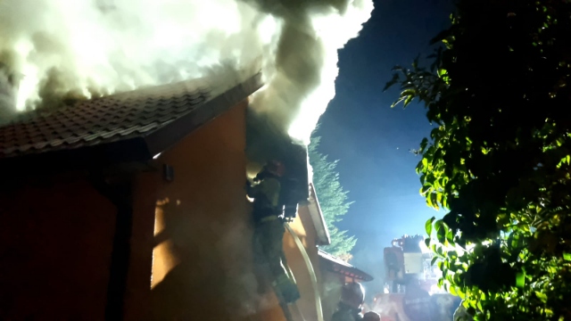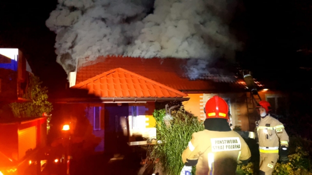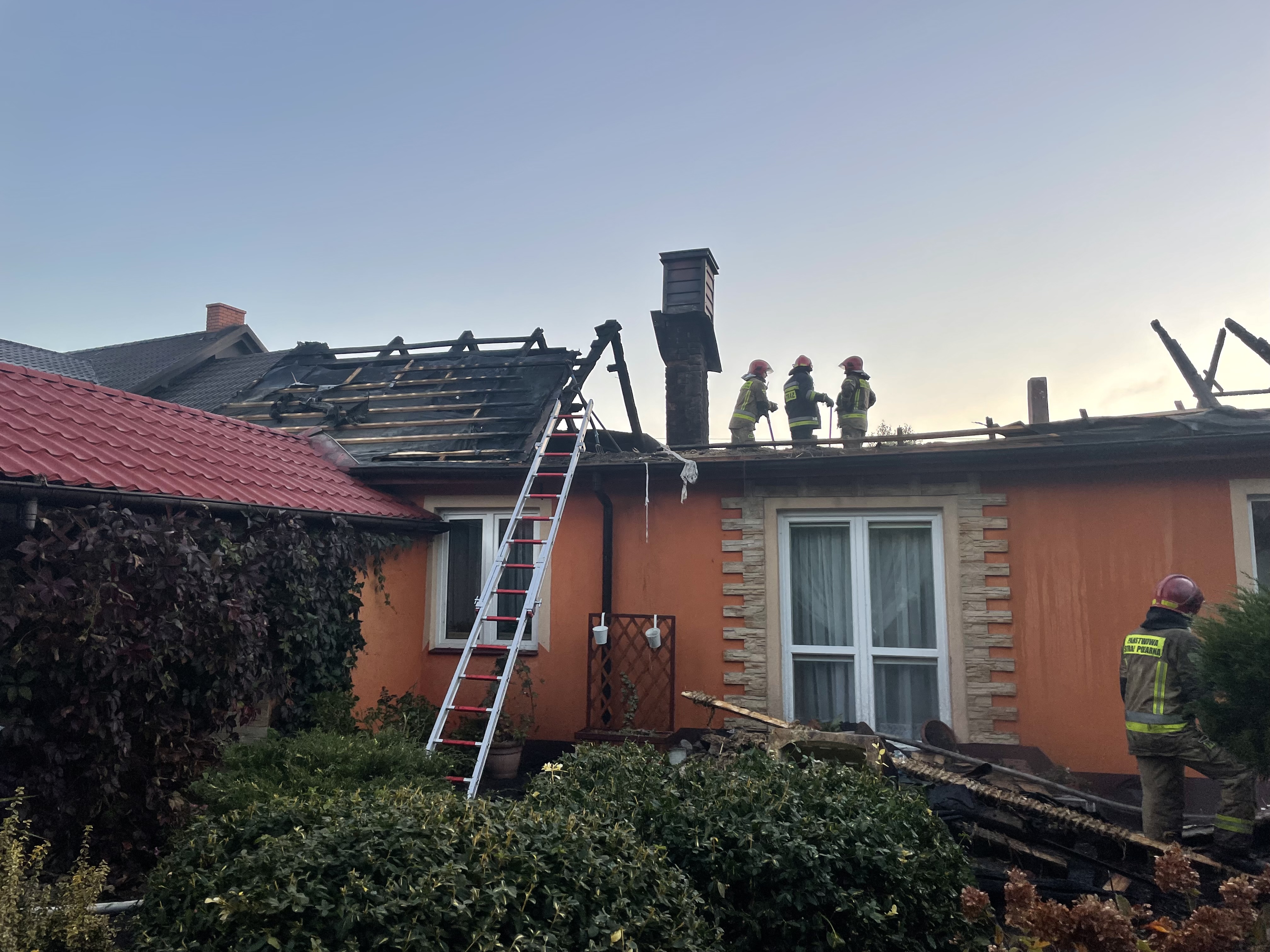13 października 2022 r. tuż przed godziną 3 nad ranem do Stanowiska Kierowania Komendanta Powiatowego PSP w Ostrowcu Św. wpłynęło zgłoszenie o pożarze domu przy ul. Iłżeckiej w Ostrowcu Św. Do zdarzenia natychmiast zadysponowano 6 samochodów ratowniczo-gaśniczych – 22 strażaków. Po przybyciu ratowników na teren akcji stwierdzono, że pożarem objęty jest dach budynku mieszkalnego jednorodzinnego. Budynek konstrukcji drewnianej pokryty blachodachówką. Dwie osoby zamieszkujące obiekt znajdowały się na zewnątrz i nie uskarżały się na żadne dolegliwości. Działania ratowników w pierwszej kolejności polegały na zabezpieczeniu miejsca zdarzenia i podaniu wody w natarciu na palącą się więźbę dachową. W celu dotarcia do źródła pożaru przystąpiono do wycięcia otworów w dachu. Następnie dokonano rozbiórki elementów konstrukcji więźby oraz częściowo drewnianego stropu w celu dokładnego dogaszenia tlących się elementów konstrukcji. Po całkowitym ugaszeniu i oddymieniu budynku sprawdzono go używając kamery termowizyjnej nie stwierdzając zagrożenia. Na tym działania zakończono, akcja trwała ponad 7 godzin.
