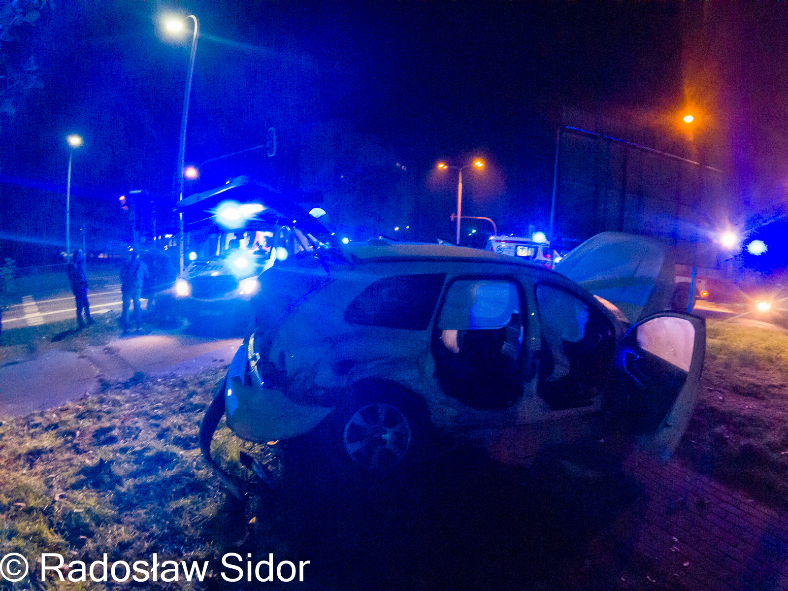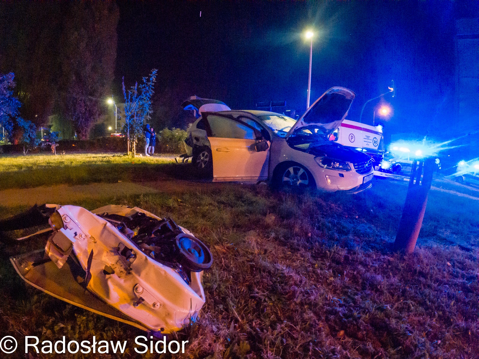 10 października 2021 r. tuż po godzinie 2 do Stanowiska Kierowania Komendanta Powiatowego PSP w Ostrowcu Św. wpłynęło zgłoszenie o wypadku drogowym przy ul. Radwana w Ostrowcu Św. Do zdarzenia natychmiast zadysponowano 3 samochody ratowniczo-gaśnicze 10 strażaków. Po przybyciu zastępów na teren akcji, stwierdzono zderzenie dwóch samochodów osobowych marki BMW E46 i VOLVO XC60. Pojazdami łącznie podróżowało 8 osób. Siedem osób opuściło auta jeszcze przed przybyciem ratowników. Natomiast pasażer samochodu marki VOLVO był uwięziony w pojeździe, przytomny z zachowanymi funkcjami życiowymi. Działania ratowników w pierwszej kolejności polegały na zabezpieczeniu miejsca zdarzenia oraz wykonaniu dostępu do poszkodowanego przy użyciu narzędzi hydraulicznych a następnie uwolnieniu go z pojazdu. Wspólnie z ratownikami ZRM przybyłymi na miejsce zdarzenia został przetransportowany na noszach do karetki. Jednocześnie strażacy udzielili kwalifikowanej pierwszej pomocy drugiemu pasażerowi VOLVO, który leżał na pobliskim chodniku z widocznymi ranami głowy. Pozostali uczestnicy wypadku nie uskarżali się na żadne dolegliwości i po przebadaniu przez ZRM nie zostali hospitalizowani. Dalsze czynności strażaków polegały na likwidacji plamy płynów eksploatacyjnych z jezdni. Na tym działania zakończono. Akcja trwała ponad 2 godziny.