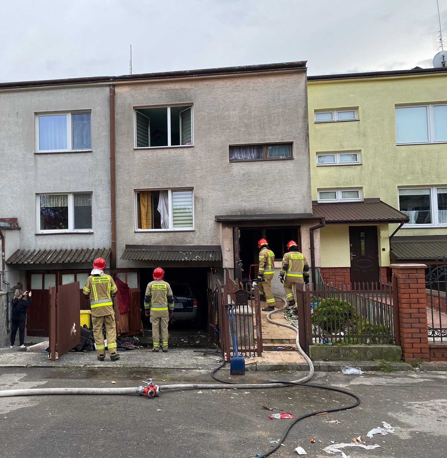 24 września 2022 r. tuż przed godziną 13 do Stanowiska Kierowania Komendanta Powiatowego PSP w Ostrowcu Św. wpłynęło zgłoszenie o wybuchu gazu w budynku mieszkalnym przy ul. Tetmajera w Ostrowcu Św. Do zdarzenia natychmiast zadysponowano 4 samochody ratowniczo-gaśnicze – 12 strażaków. Po dojeździe na miejsce akcji stwierdzono, że dym wydobywał się z otworów okienno-drzwiowych dwukondygnacyjnego budynku w zabudowie szeregowej. Przed budynkiem znajdowały się porozrzucane, uszkodzone elementy wyposażenia, a w garażu zlokalizowanym w podpiwniczeniu zaparkowany jest uszkodzony i opalony samochód osobowy. Dwie osoby (kobieta z dzieckiem), które opuściły obiekt przed przybyciem zastępów PSP znajdowały się na zewnątrz i nie uskarżały się na żadne dolegliwości. Działania strażaków polegały na zabezpieczeniu miejsca zdarzenia, oraz udzieleniu kwalifikowanej pierwszej pomocy w postaci wsparcia psychicznego i zapewnieniu komfortu cieplnego kobiecie i dziecku. Jednocześnie wprowadzono do wewnątrz obiektu ratowników w celu ugaszenia pożaru i przeszukania pomieszczeń. Na miejsce zdarzenia przybyło pogotowie energetyczne i gazowe. Odcięty został dopływ energii elektrycznej oraz gaz do wszystkich budynków w zabudowie szeregowej. Po lokalizacji pożaru przeszukano zagrożone pomieszczenia jednocześnie je oddymiając przy pomocy wentylatora osiowego. Następnie skontrolowano budynek objęty działaniami oraz raz sąsiednie mieszkania miernikami wielogazowymi nie stwierdzając niebezpiecznych substancji w atmosferze. W podpiwniczonym garażu znajdował się samochód osobowy marki Ford Escape. Wszystkie szyby i elementy karoserii pojazdu były mocno uszkodzone. Strażacy zakręcili butlę gazową instalacji LPG i odłączyli akumulator w pojeździe. Następnie wypchnięto samochód z garażu na zewnątrz. Elementy konstrukcyjne budynku nie były naruszone. O zdarzeniu poinformowano Nadzór Budowlany. Na tym działania zakończono. Akcja trwała prawie 2 godziny.
