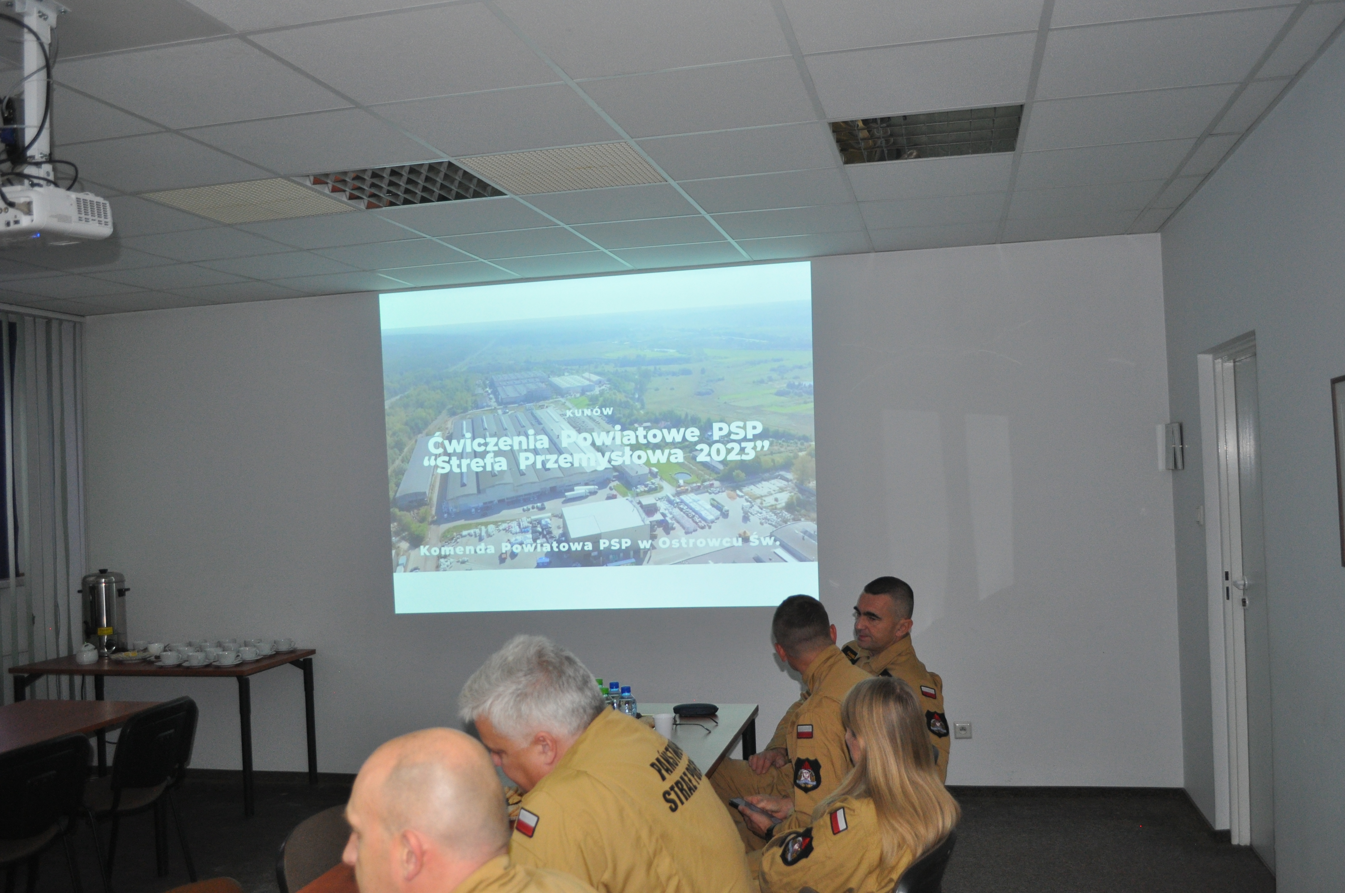 23 października 2023 r. w siedzibie Komendy Powiatowej PSP w Ostrowcu Św. odbyło się spotkanie mające na celu podsumowanie ćwiczeń powiatowych pod kryptonimem „STREFA PRZEMYSŁOWA 2023”. Manewry w których zaangażowani zostali również ochotnicy z powiatu ostrowieckiego odbyły 27 września br. na terenie takich zakładów m.in. jak PerfectDoor Sp. z o.o. czy TBM Sp. z o.o. Więcej o tychże ćwiczeniach pisaliśmy na naszej stronie: https://www.gov.pl/web/kppsp-ostrowiec-swietokrzyski/cwiczenia-ostrowieckich-strazakow-pk-strefa-przemyslowa-2023