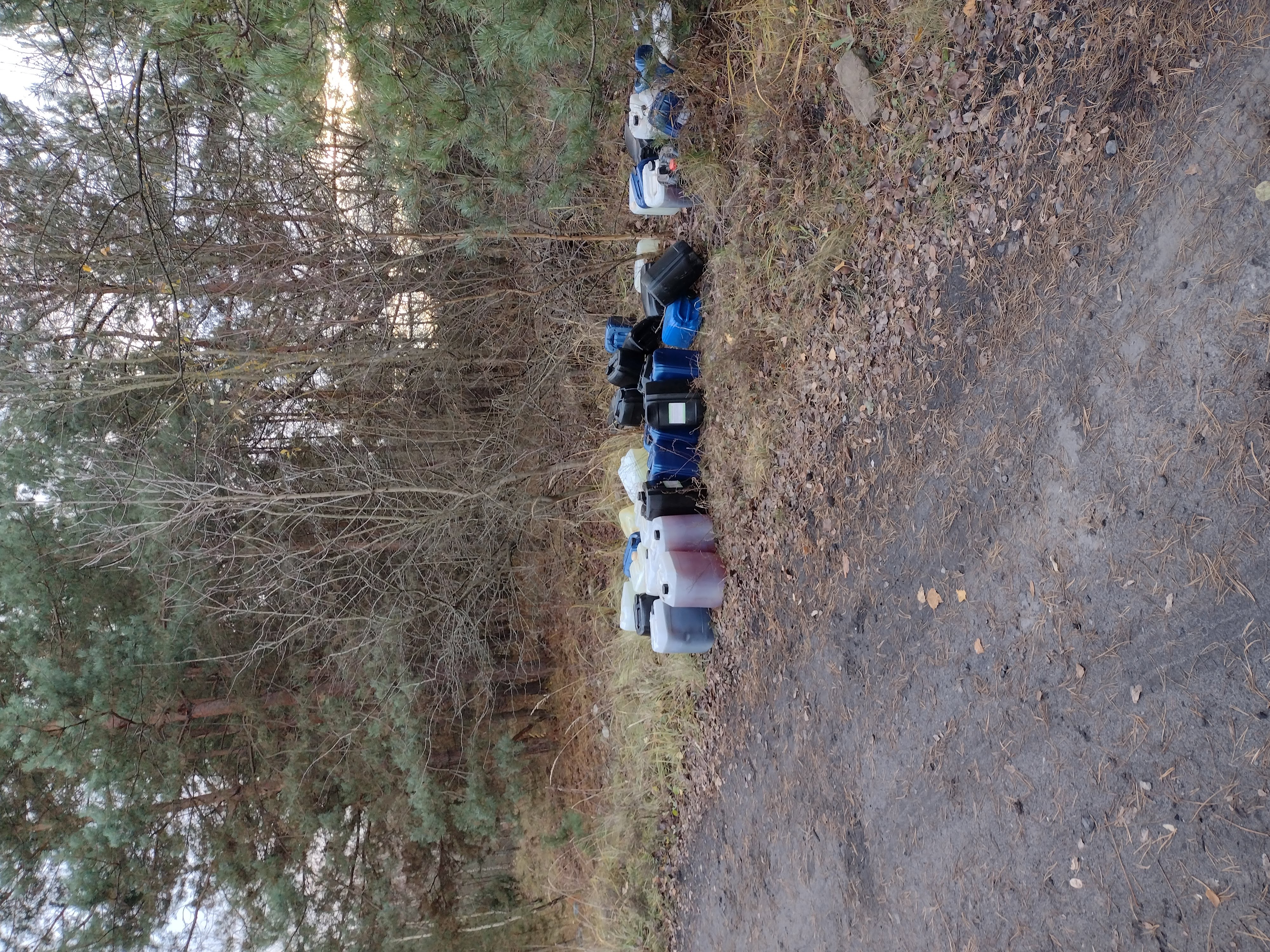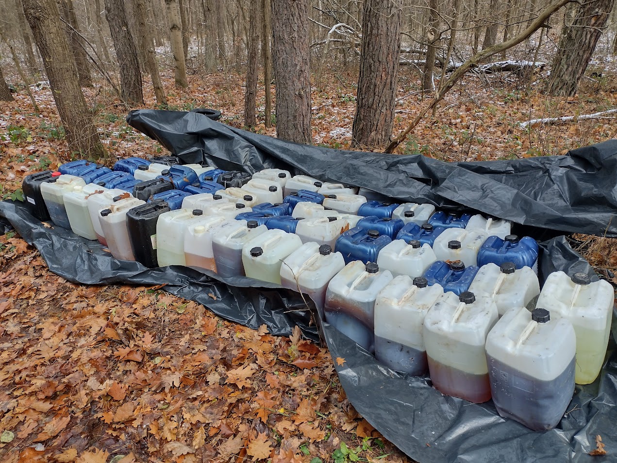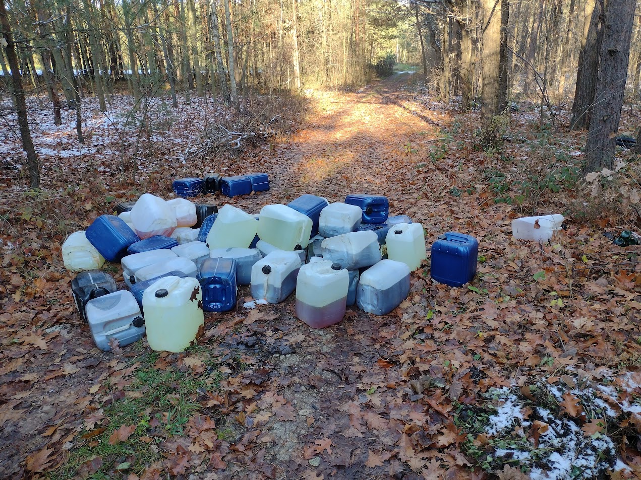 -w miejsowośći Wólka Bodzechowska - 47 plastikowych pojemników o poj. 20 l każdy z nieznaną substancją;