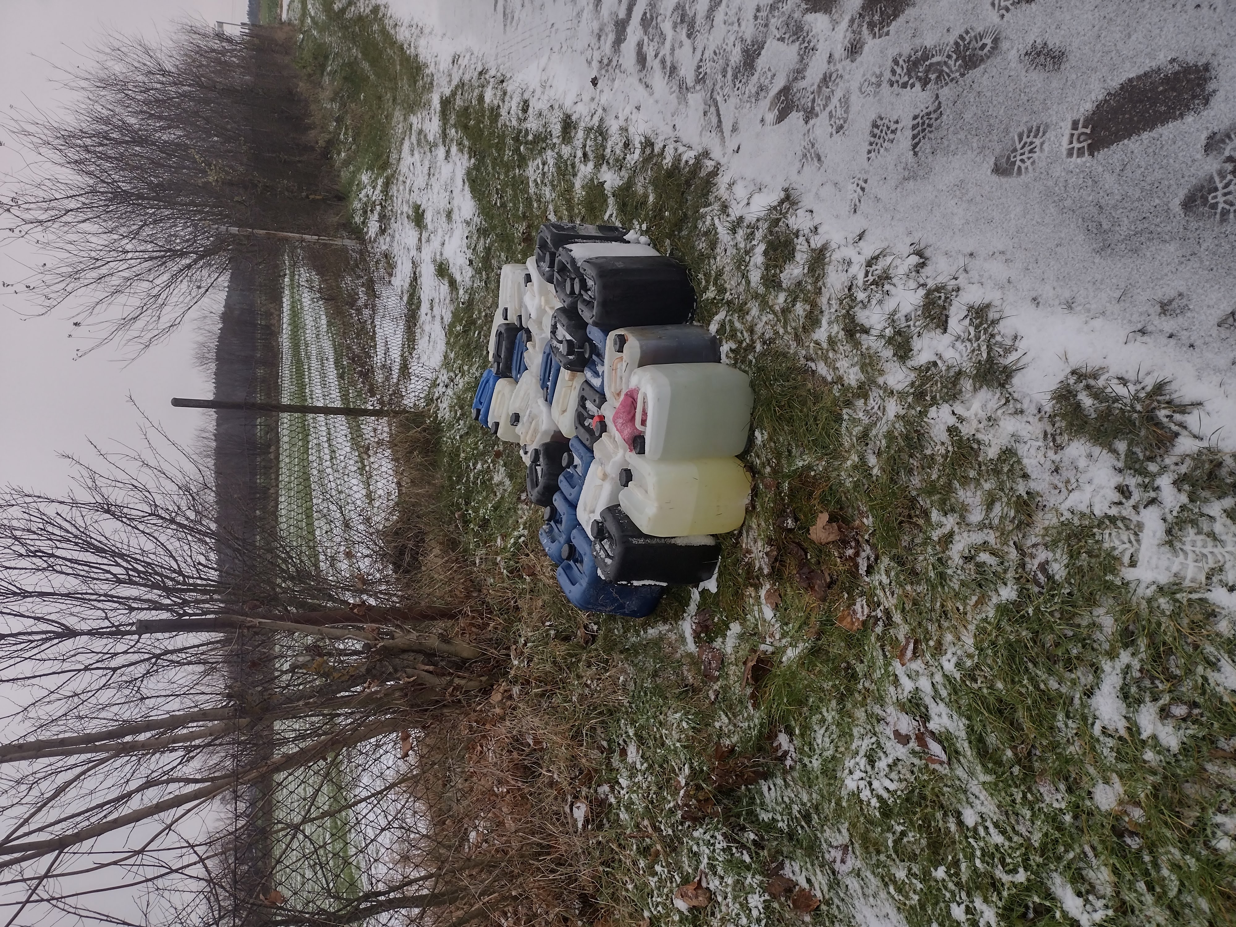 -w miejscowości Podgórze – 58 plastikowych pojemników o poj. 20 l każdy z nieznaną substancją;