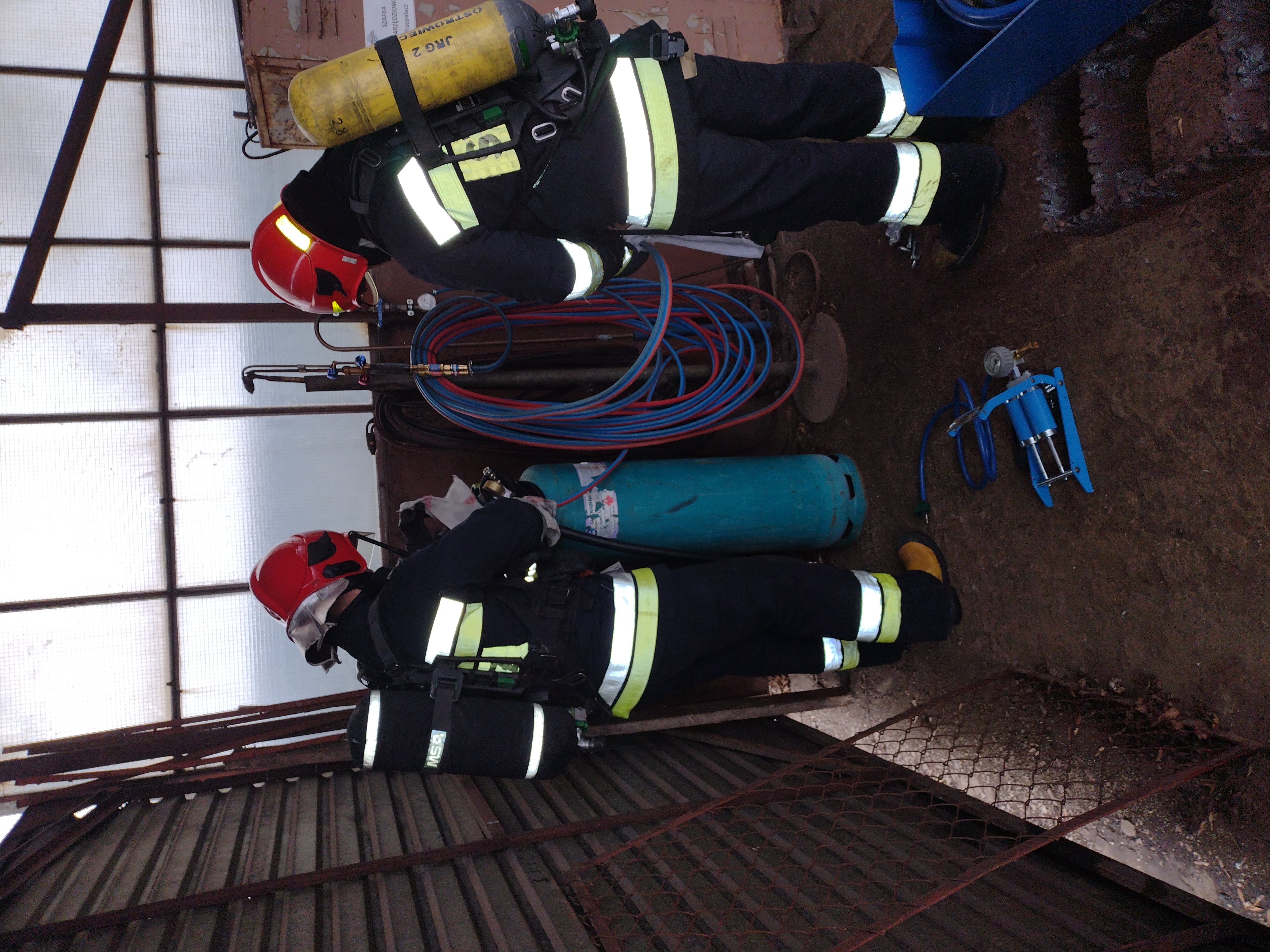 Po przyjeździe na miejsce zdarzenia i ocenie zagrożenia, ratownicy zabezpieczeni w aparaty powietrzne wyznaczyli strefę bezpieczną oraz uszczelnili miejsce emisji gazu do otoczenia. W tym celu wykorzystali specjalistyczny sprzęt służący do uszczelniania zbiorników i butli z gazami. Po uszczelnieniu sprawdzono detektorami najbliższe otoczenie miejsca wycieku dla upewnienia się, że nie ma zagrożenia. Ponadto w ramach ćwiczeń przeprowadzono symulację różnych wariantów rozszczelnienia instalacji gazowej.