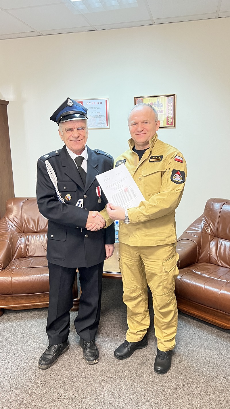1 lutego 2023 r. w siedzibie KP PSP w Ostrowcu Św. - st. bryg. Robert Grudzień dokonał wręczenia decyzji o przyznaniu kolejnego świadczenia ratowniczego członkowi ochotniczej straży pożarnej z terenu gminy Kunów druhowi Rajmundowi Różalskiemu.