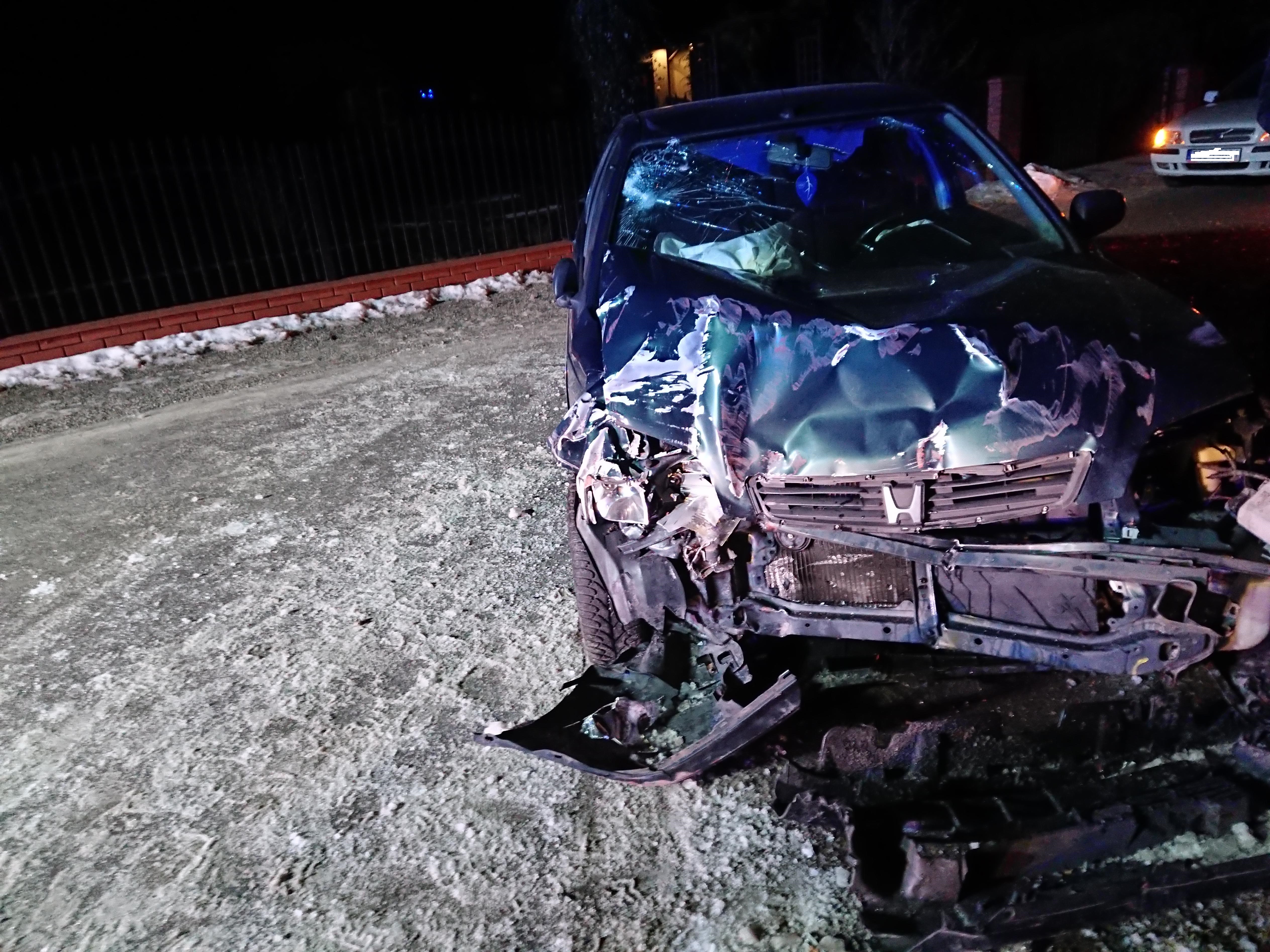 Po przybyciu na miejsca zdarzenia strażaków stwierdzono, że doszło do kolizji samochodu osobowego Honda Civic z metalowym ogrodzeniem. Kierujący pojazdem mężczyzna, który podróżował sam znajdował się w radiowozie i odmówił udzielenia pomocy medycznej. Pojazd znajdował się częściowo na poboczu i jezdni.