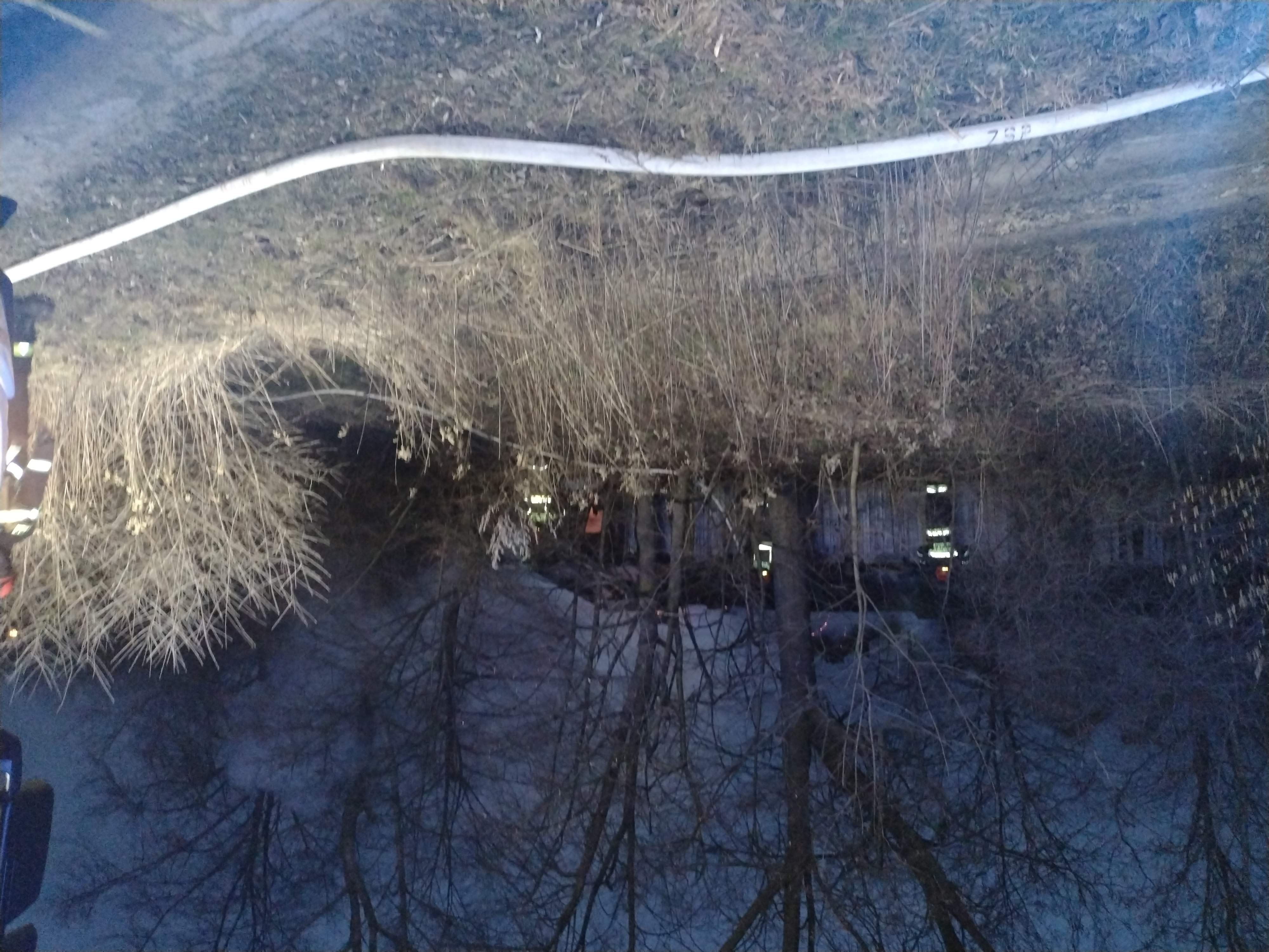 W dniu 26.02.2023 roku w godzinach wieczornych otrzymaliśmy informację o pożarze budynku gospodarczego w miejscowości Ćmielów ul. Skała. Po dojeździe na miejsce zdarzenia stwierdzono, że w 3/4 objętości pali się budynek gospodarczy (pustostan) o wymiarach 11m x 4m x 3m. Budynek parterowy, drewniany, opustoszały, zdewastowany, pokryty papą. Budynek znajdował się na posesji porośniętej drzewami i krzakami. Obok palącego się budynku ok. 2m znajdował się opuszczony budynek mieszkalny. W palącym się budynku brak energii elektrycznej. Brak właściciela budynku oraz osób postronnych. Działania zastępów polegały na zabezpieczeniu miejsca zdarzenia, podaniu dwóch prądów wody: w natarciu na palący budynek i w obronie na budynek mieszkalny. Po zlokalizowaniu pożaru, przeszukano budynek. W pomieszczeniach budynku nikogo nie znaleziono. Dalsze działania polegały na pracach rozbiórkowych spalonych elementów konstrukcji budynku, wynoszeniu ich w bezpieczne miejsce i przelaniu ich wodą. Na miejsce zdarzenia przybył patrol policji. Po ugaszeniu sprawdzono za pomocą kamery termowizyjnej temperaturę pogorzeliska. Brak niebezpiecznych wskazań. Na tym działania zakończono.