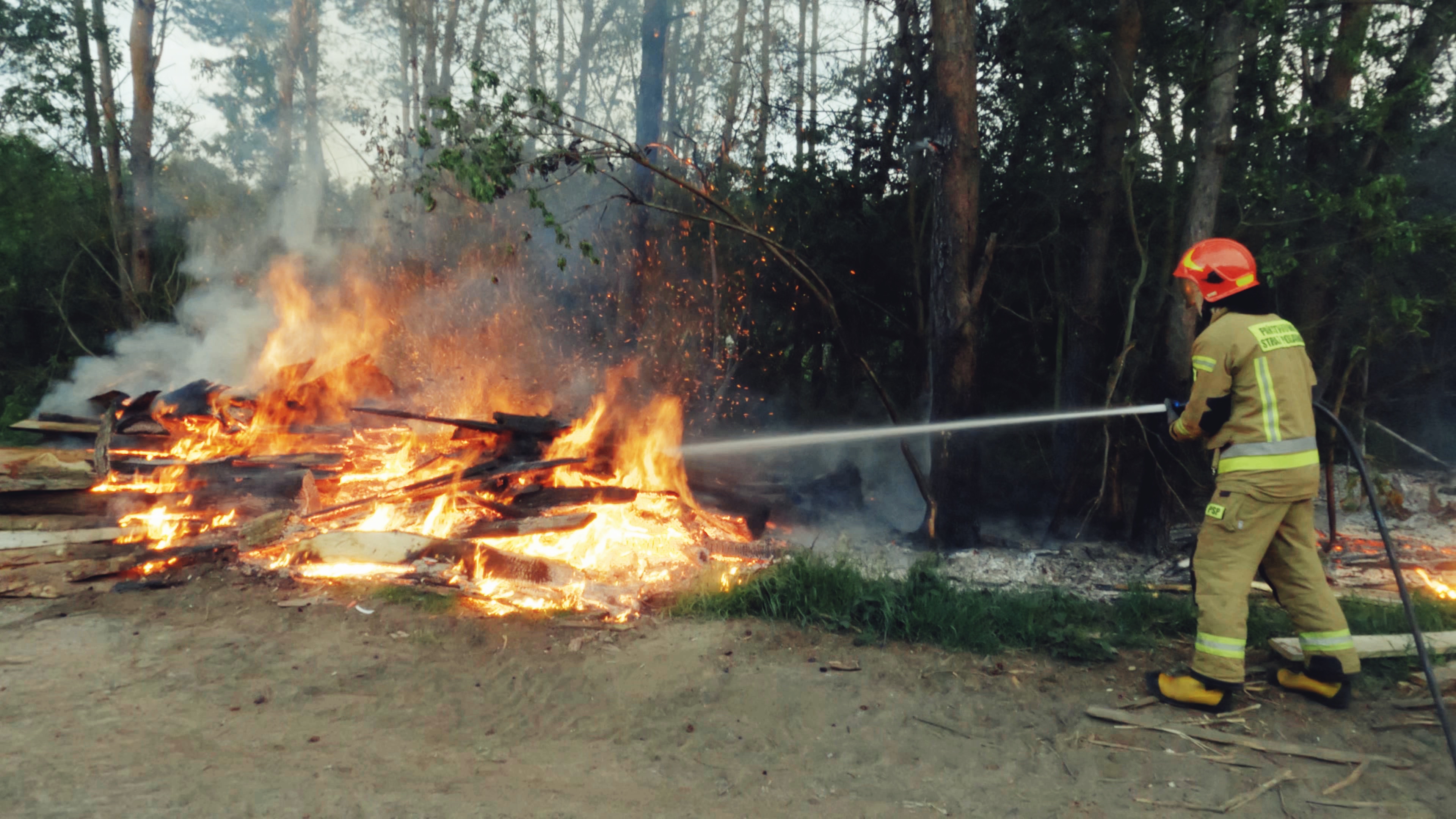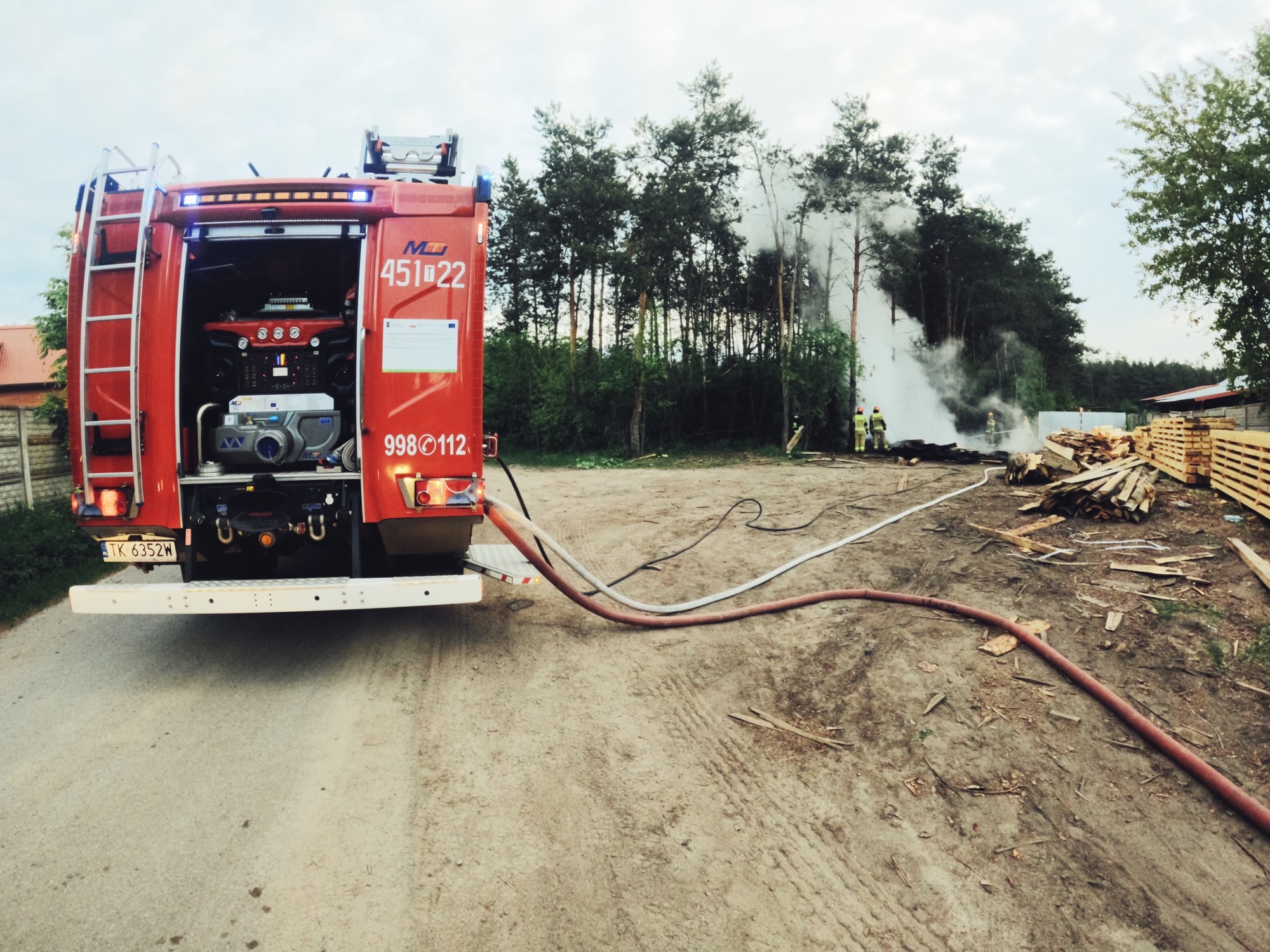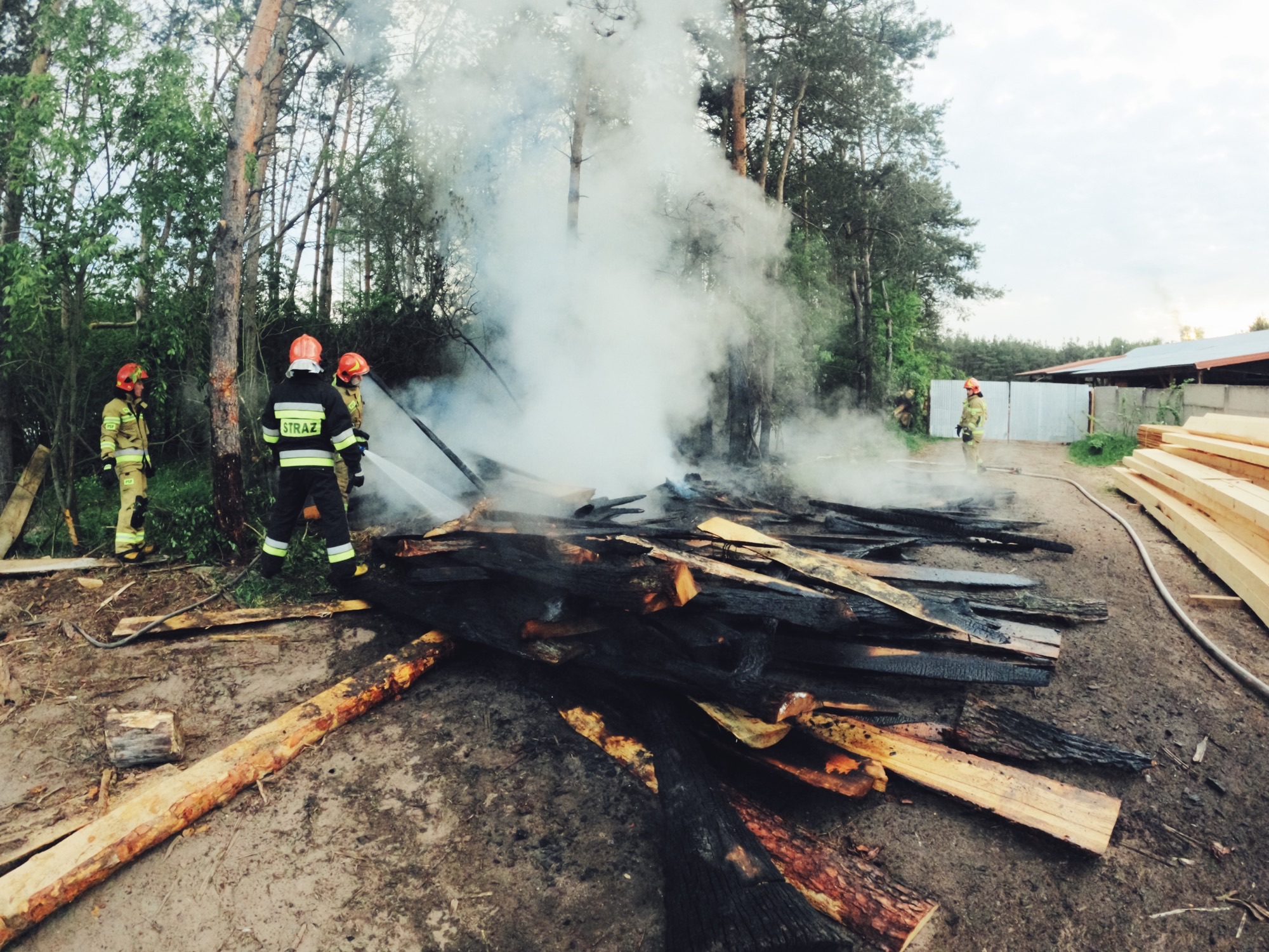 Pożar magazynowanego drewna w Sudole