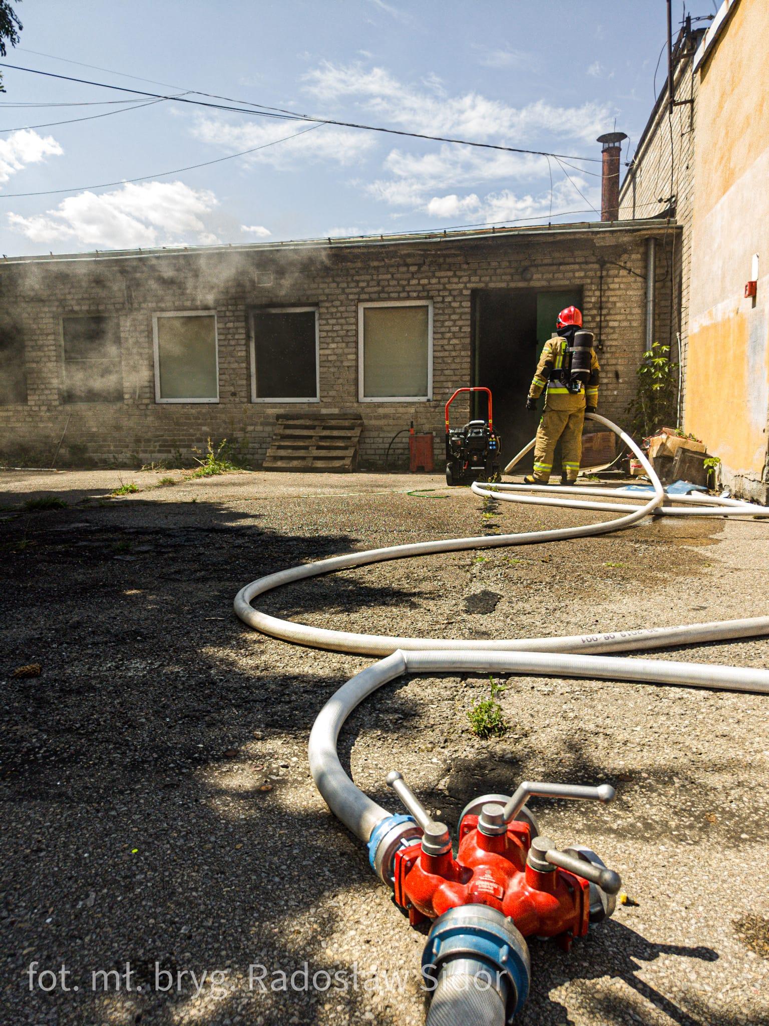Pożar w hali byłej zajezdni MZK przy Alei Jana Pawła II w Ostrowcu Świętokrzyskim