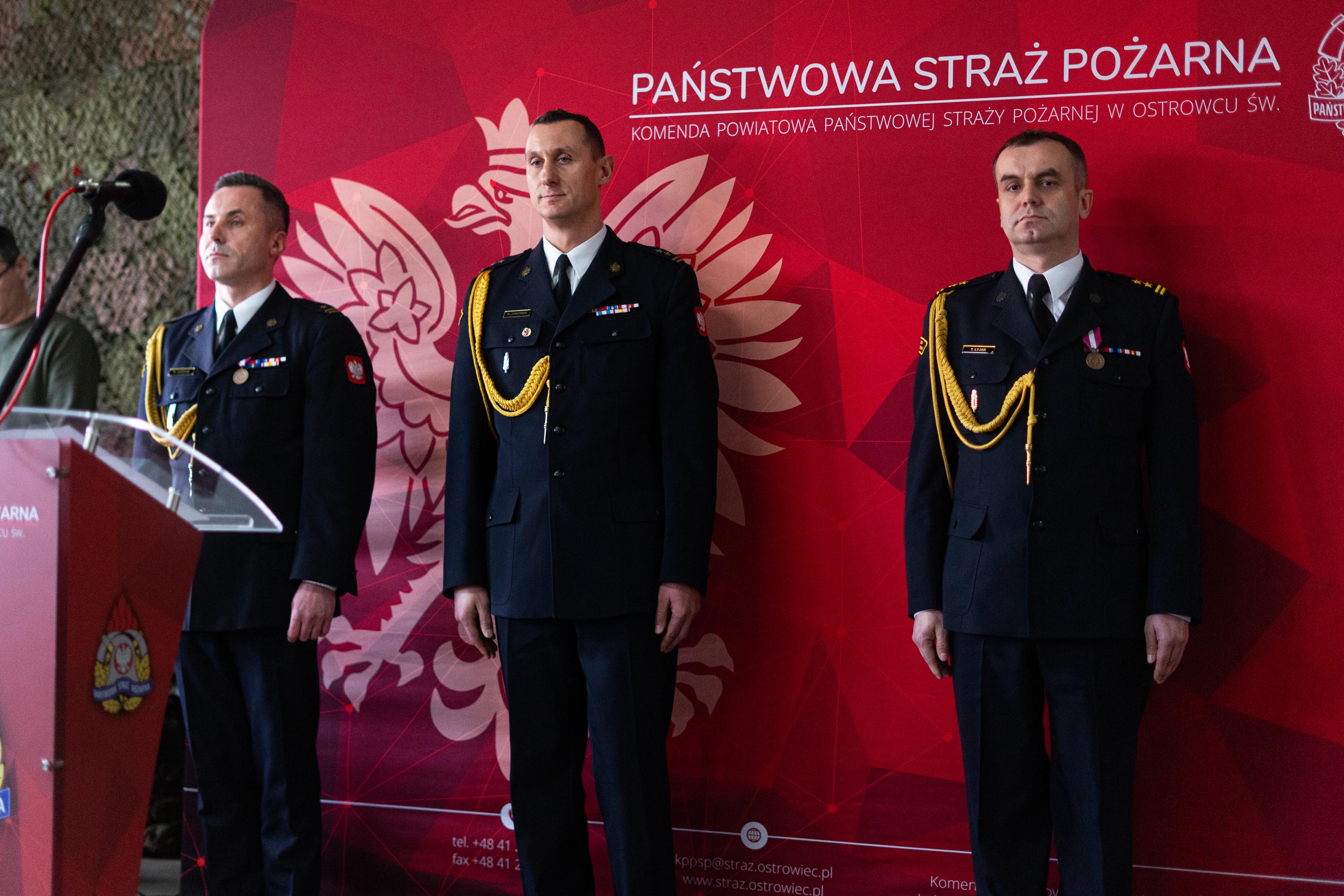 oraz komendantów gminnych OSP, przedstawicieli służb i instytucji współdziałających, a także pracowników i funkcjonariuszy ostrowieckiej komendy.