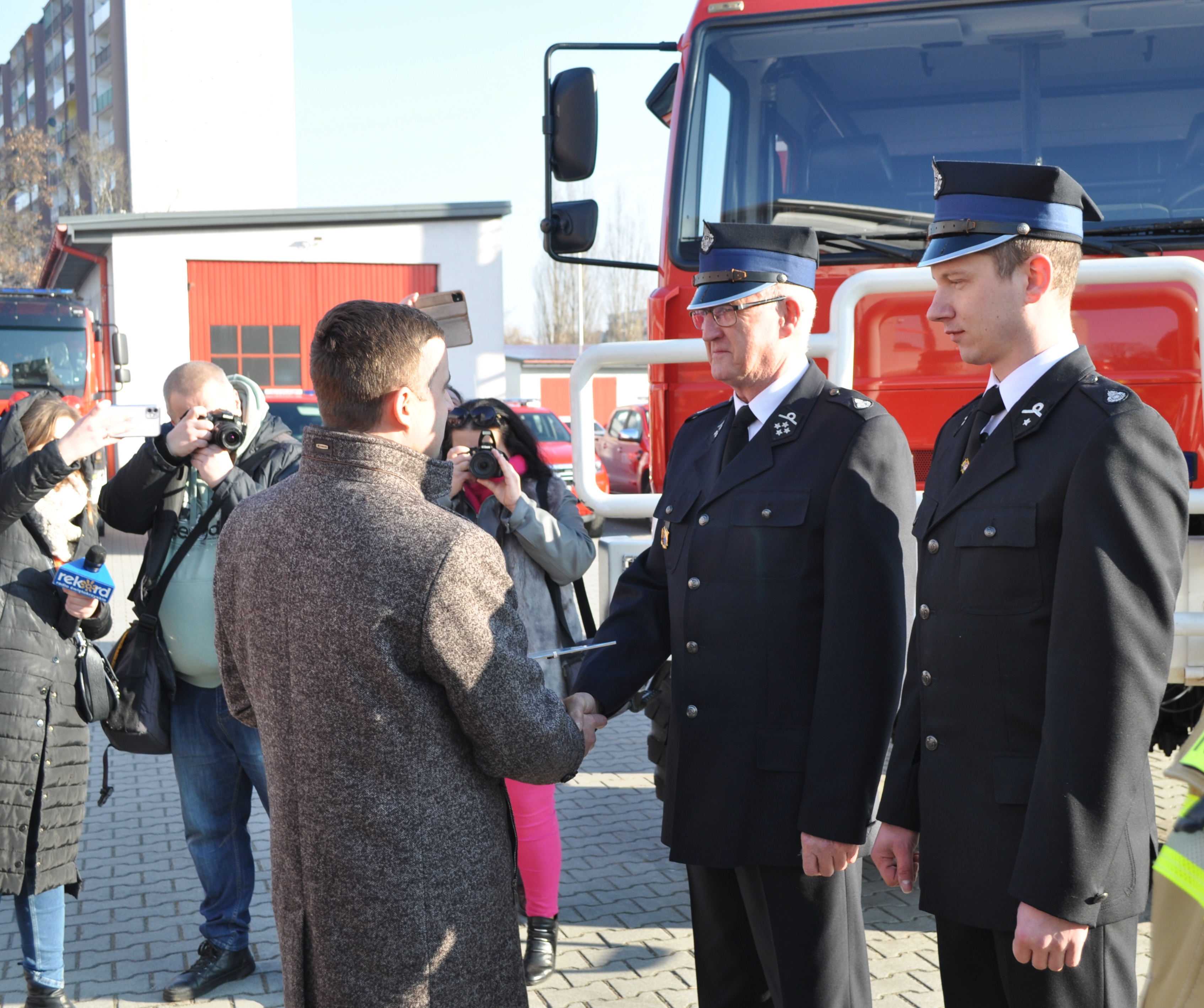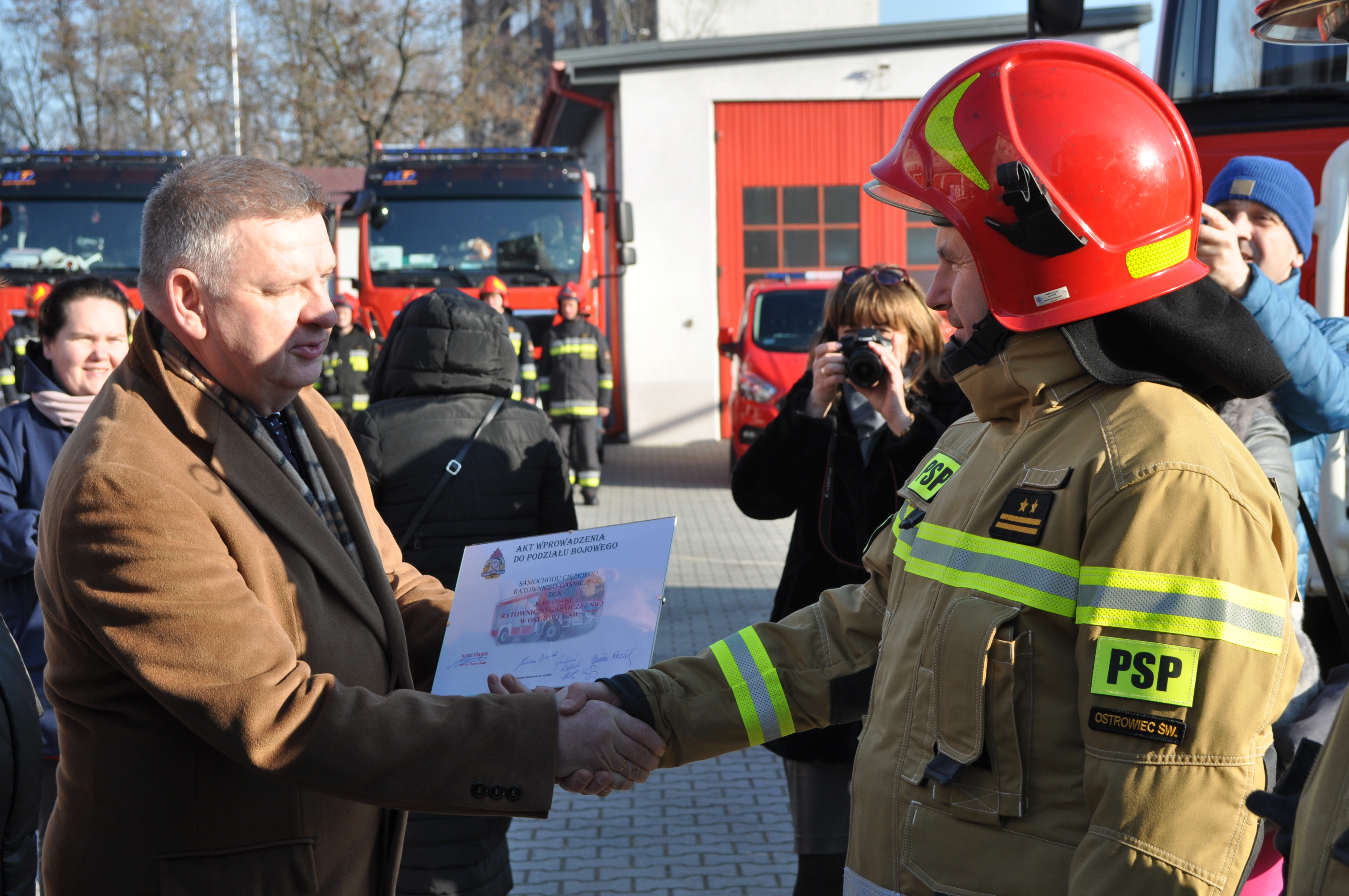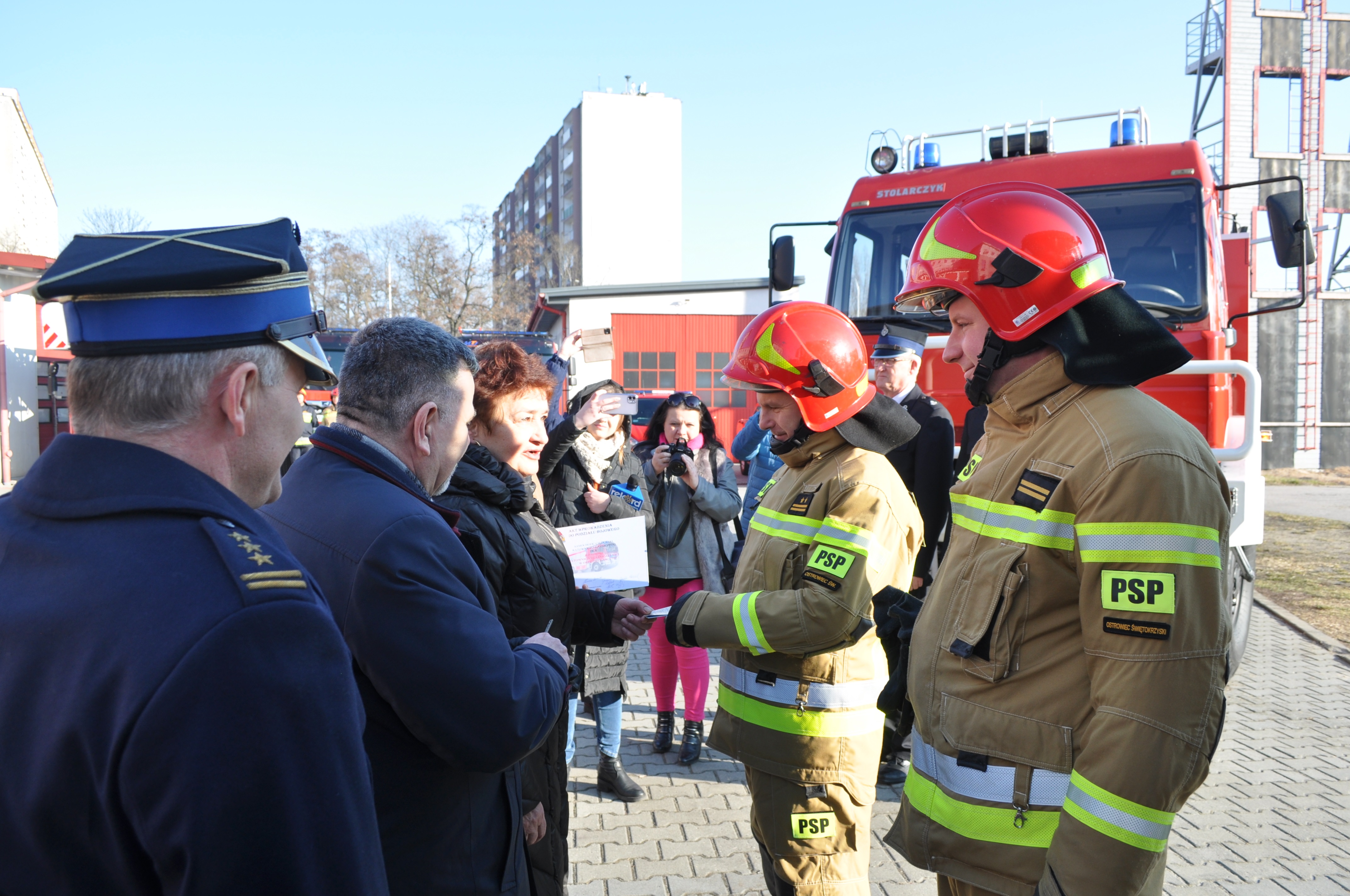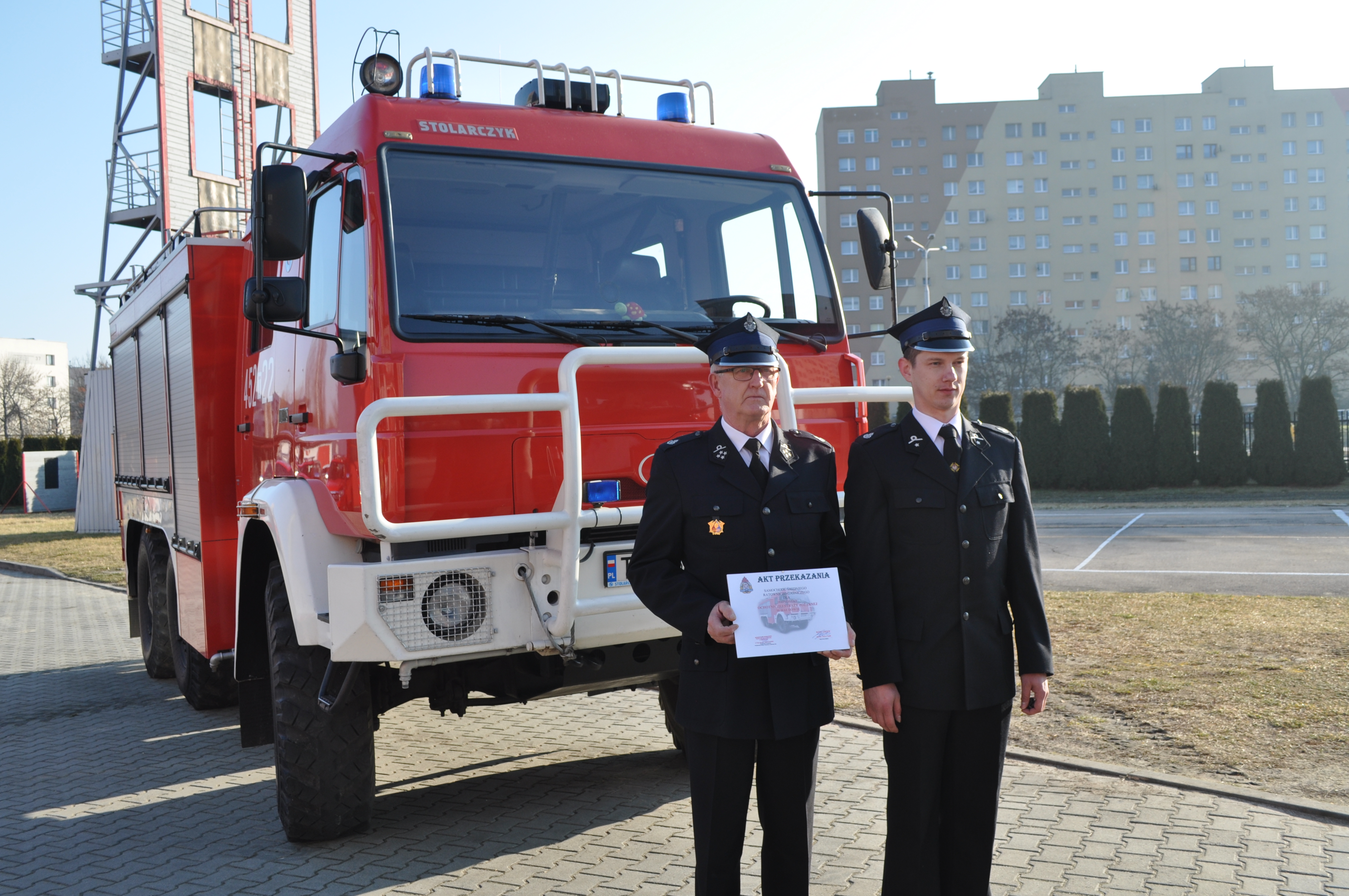 Kluczyki do nowego nabytku odebrał z rąk naszych gości dowódca JRG Nr 1 w Ostrowcu Św. bryg. Robert Sobczyk.