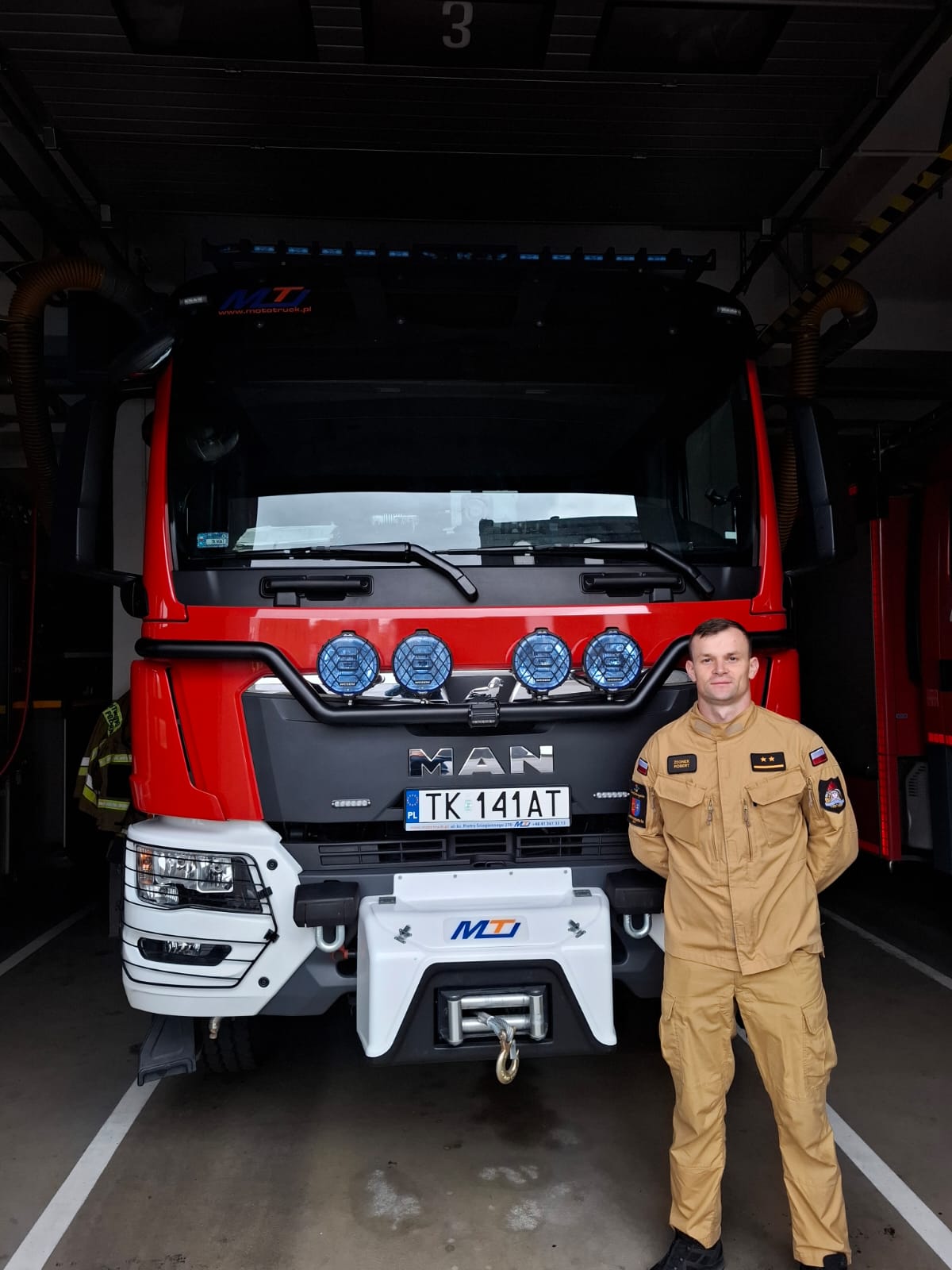 12 września 2025 r. w godzinach popołudniowych w miejscowości Okół (powiat ostrowiecki, gmina Bałtów) na drodze wojewódzkiej Nr 754 doszło do wypadku dwóch motocykli oraz samochodu osobowego, w wyniku którego jeden z motocyklistów znajdował się pod pojazdem osobowym. Sytuacja była o tyle trudna i niebezpieczna, że poszkodowana osoba wymagała natychmiastowej pomocy medycznej. W czasie wolnym mł. kpt. Robert Zdonek będący w pobliżu tego zdarzenia, po uzyskaniu informacji o zaistniałej sytuacji natychmiast udał się na miejsce i wykonał szereg niezbędnych czynności ratowniczych, aby zminimalizować niebezpieczeństwo. Najpierw niezwłocznie dokonał zabezpieczenia miejsca zdarzenia oraz przystąpił do udzielenia pomocy rannemu motocykliście do momentu przybycia służb ratunkowych. Jesteśmy dumni z naszego strażaka i wiemy, że jest on doskonały przykładem i wzorem postępowania dla młodszych kolegów. Cieszymy się, że wśród nas jest tak znakomity ratownik, na którego zawsze możemy liczyć.
