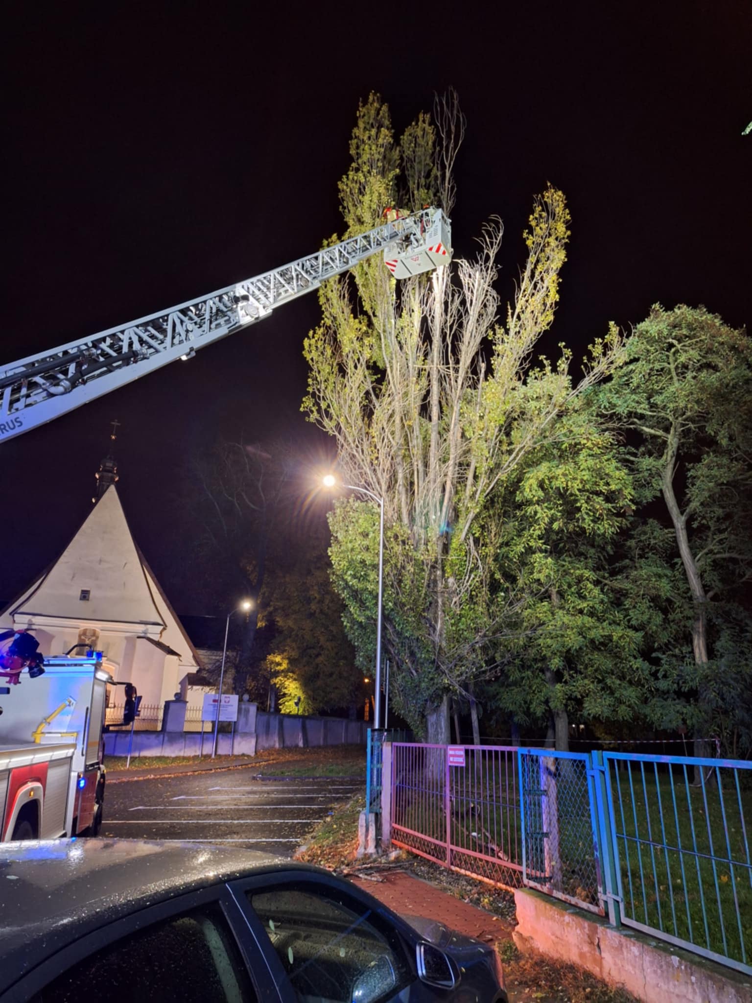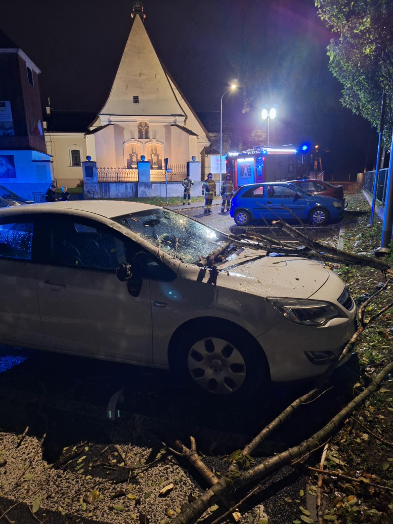 18 października 2025 r. w godzinach wieczornych w wyniku silnych podmuchów wiatru przy ul. Szkolnej w Ostrowcu Św., odłamany konar drzewa uszkodził samochód osobowy marki Opel Astra. Drzewo (topola) stwarzało zagrożenie w postaci odłamania się kolejnych zwisających nadłamanych konarów. Działania strażaków polegały na wycięciu uschniętych nadłamanych konarów drzewa i uprzątnieciu ich w bezpieczne miejsce. Na miejscu zdarzenia obecny był właściciel uszkodzonego pojazdu oraz patrol policji.