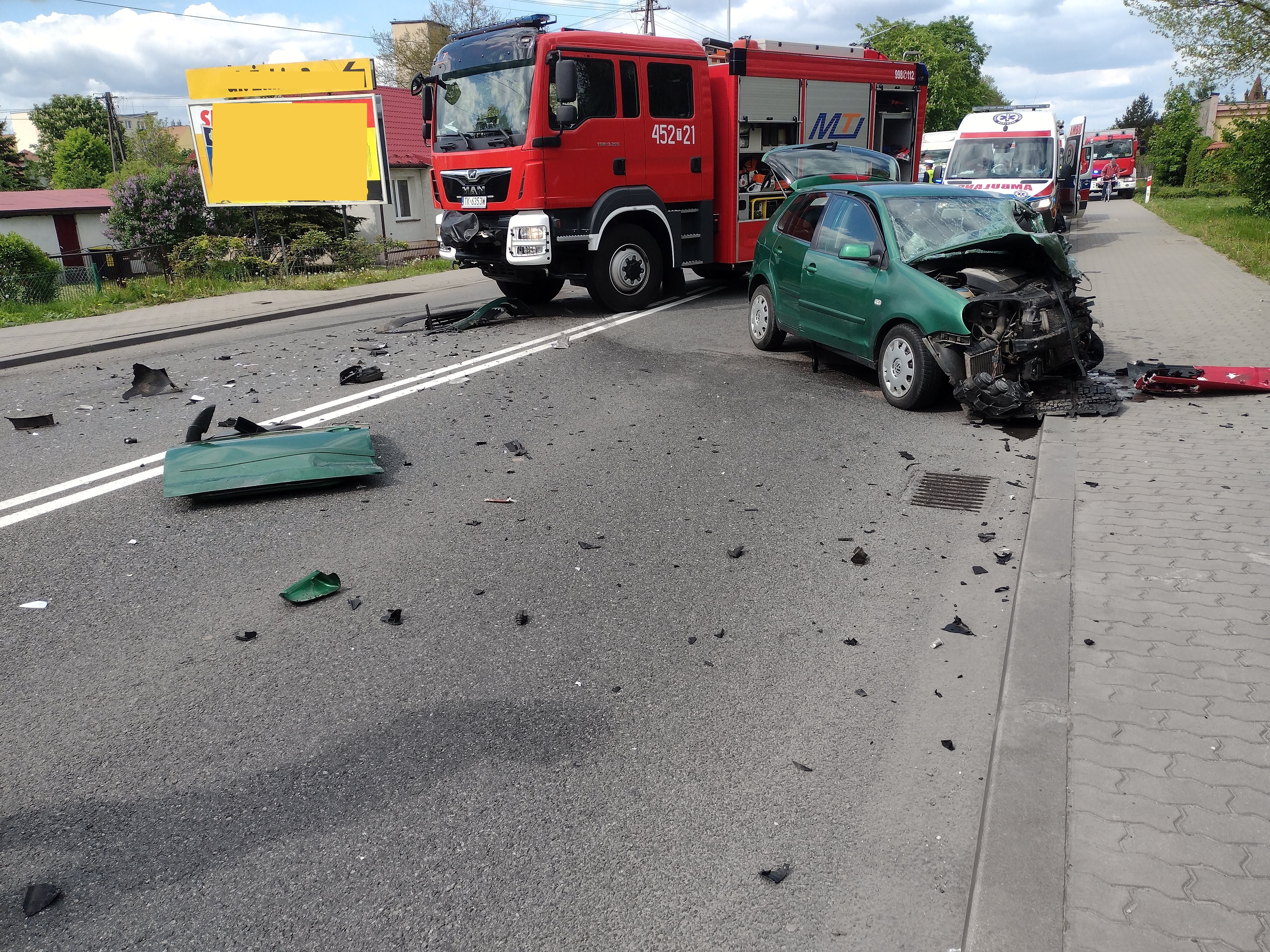 20 maja 2021 r. tuż przed godziną 15 do Stanowiska Kierowania Komendanta Powiatowego PSP w Ostrowcu Św. wpłynęło zgłoszenie o wypadku drogowym na drodze krajowej Nr 9 przy ul. Opatowskiej w Ostrowcu Św. Do zdarzenia natychmiast zadysponowano 4 samochody ratowniczo-gaśnicze – 13 strażaków. Po przybyciu na miejsca akcji ratowników stwierdzono, że doszło do zderzenia dwóch samochodów: osobowego marki WV Polo, którym podróżowało 2 osoby z ciężarowym marki Scania.
