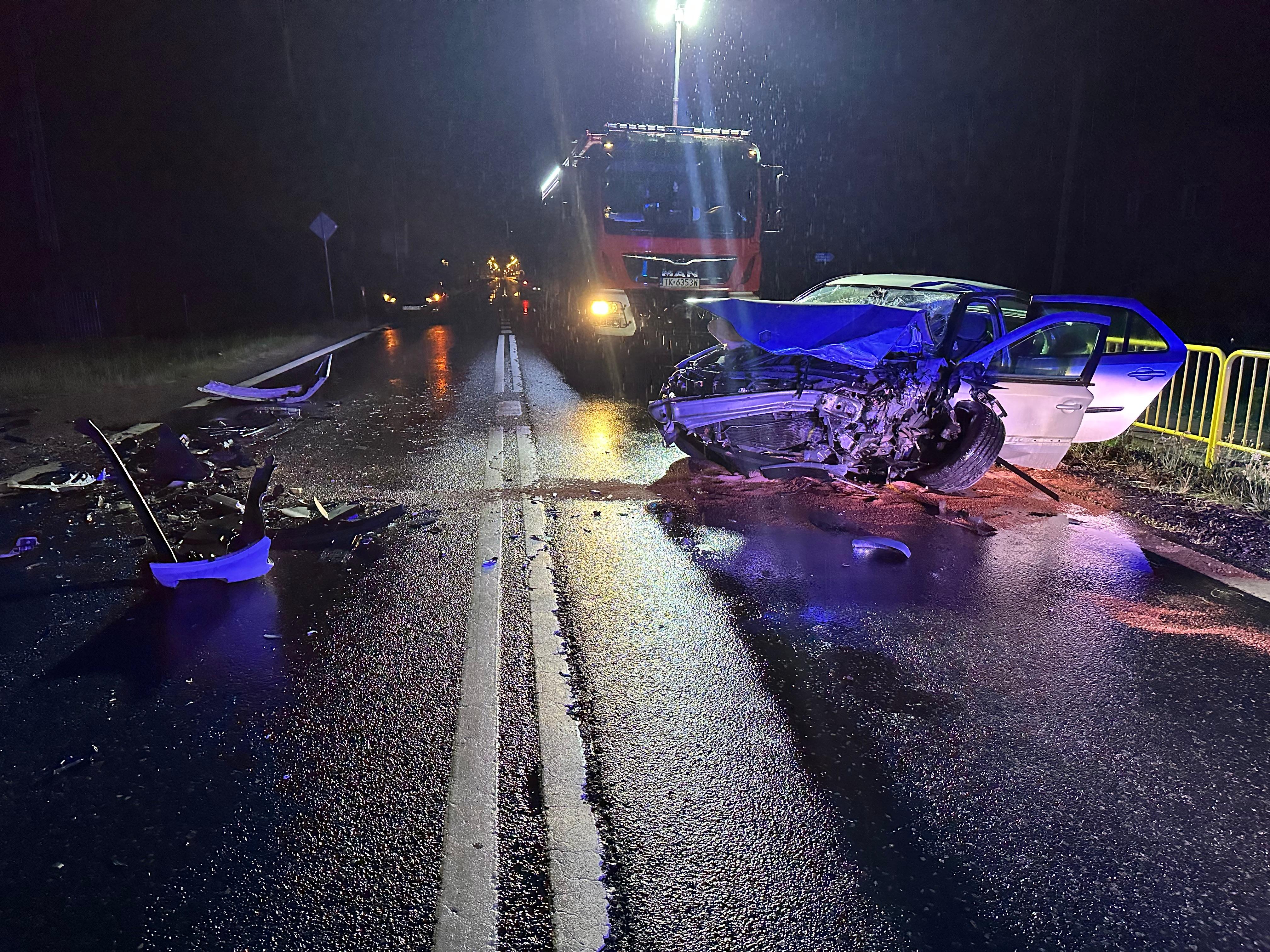 Do zdarzenia natychmiast zadysponowano 4 samochody ratowniczo-gaśniczych, 14 strażaków. Po przybyciu ratowników na teren akcji stwierdzono, że doszło do zderzenia dwóch samochodów osobowych marki: Renault Laguna z Toyotą Avensis. Samochodami podróżowali tylko kierowcy. Uczestnicy zdarzenia opuścili pojazdy o własnych siłach przed przybyciem Jednostek Ochrony Przeciwpożarowej. W wyniku zdarzenia 2 osoby zostały poszkodowane. Na miejsce przybyło 2 Zespoły Ratownictwa Medycznego oraz 2 patrole Policji. Działania strażaków polegały na, zabezpieczeniu miejsca zdarzenia, udzieleniu kwalifikowanej pierwszej pomocy osobom poszkodowanym, odłączeniu akumulatorów w pojazdach oraz uprzątnięciu pozostałości powypadkowych z jezdni. Na tym działania zakończono.