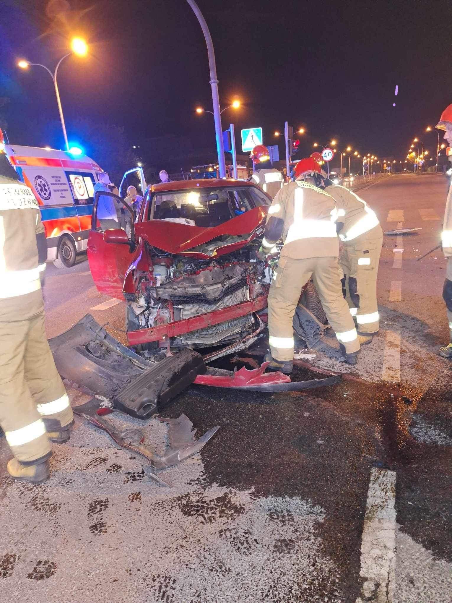 W dniu 09.05.2024 r., tuż przed północą, do Stanowiska Kierowania Komendanta Powiatowego PSP w Ostrowcu Św. wpłynęło zgłoszenie o wypadku drogowym przy ulicy Sienieńskiej w Ostrowcu Św. Do zdarzenia natychmiast zadysponowano 3 samochody ratowniczo-gaśnicze, 10 strażaków. Po przybyciu ratowników na teren akcji stwierdzono, że doszło do zderzenia dwóch samochodów osobowych marki: Toyota Auris z Volkswagen Fox. Toyotą podróżowało 2 osoby, natomiast Volkswagenem 1 osoba. Wszyscy uczestnicy wypadku opuścili auta o własnych siłach przed przybyciem Jednostek Ochrony Przeciwpożarowej. Na miejsce przybyło 2 Zespoły Ratownictwa Medycznego oraz 3 patrole Policji. Działania strażaków polegały na zabezpieczeniu miejsca zdarzenia, odłączeniu akumulatorów w pojazdach oraz uprzątnięciu pozostałości powypadkowych z jezdni. Akcja trwała ponad godzinę.