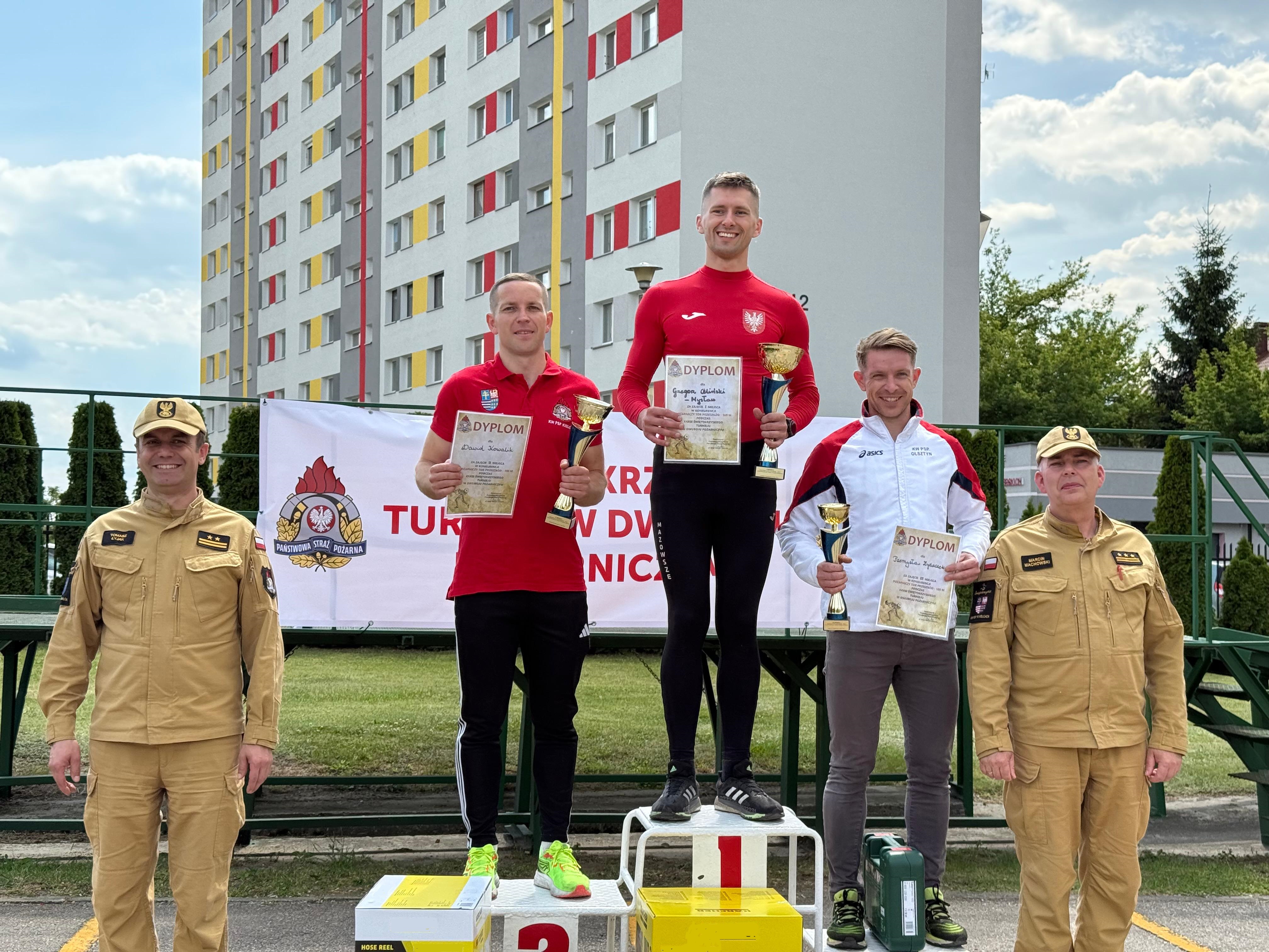 Puchary dla najlepszych zawodników w dwuboju pożarniczym oraz pozostałe nagrody rzeczowe i dyplomy ufundował Świętokrzyski Komendant Wojewódzki st. bryg. Marcin Charuba. Natomiast Zastępca Świętokrzyskiego Komendanta Wojewódzkiego PSP w Kielcach st. bryg. Marcin Machowski udekorował zawodników, podsumował turniej oraz pogratulował wszystkim uczestnikom sportowej rywalizacji i życzył kolejnych udanych startów.