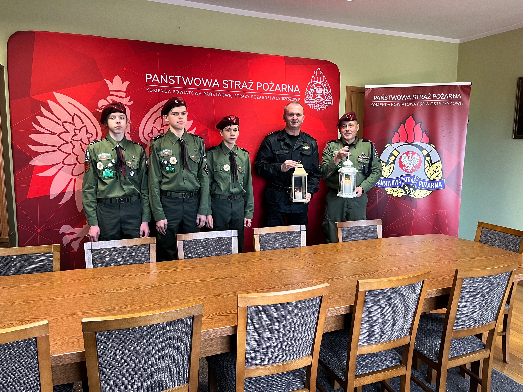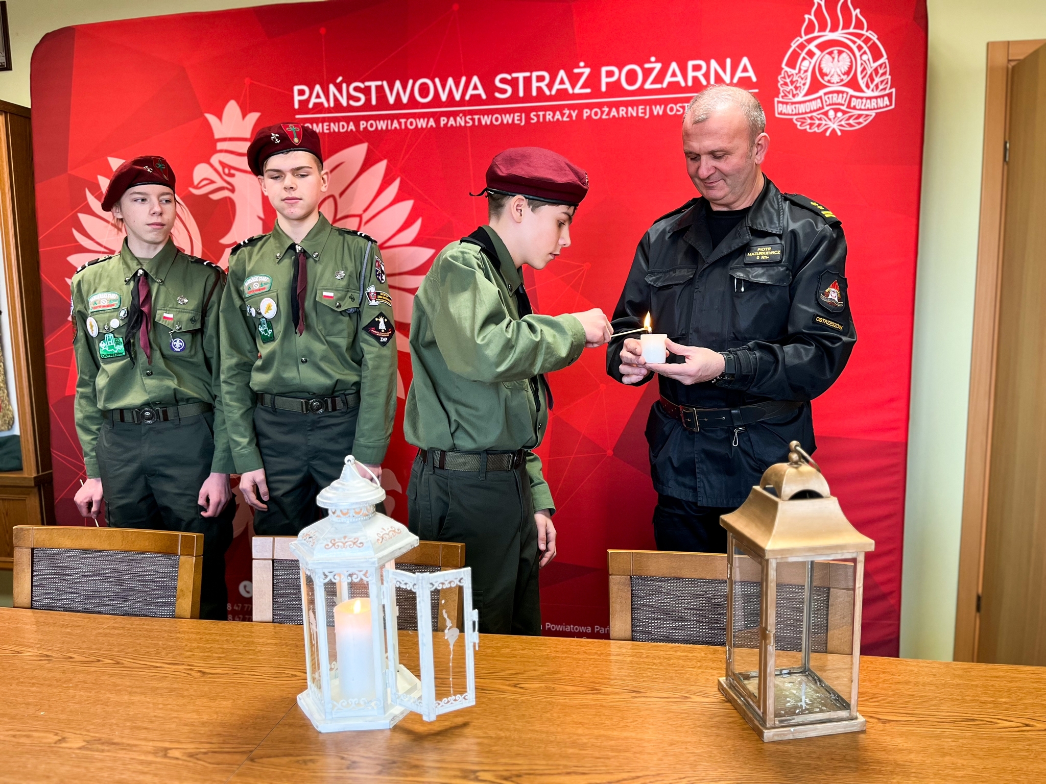 Jak co roku w czasie ostatnich przygotowań do Świąt Bożego Narodzenia harcerze z 4–tej Wielopoziomowej Drużyny Harcerskiej Związku Harcerstwa Polskiego im. Powstańców Wielkopolskich z Ostrzeszowa przynieśli do Komendy Powiatowej Państwowej Straży Pożarnej w Ostrzeszowie Betlejemskie Światło Pokoju.