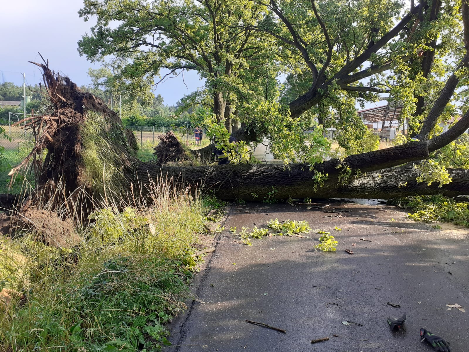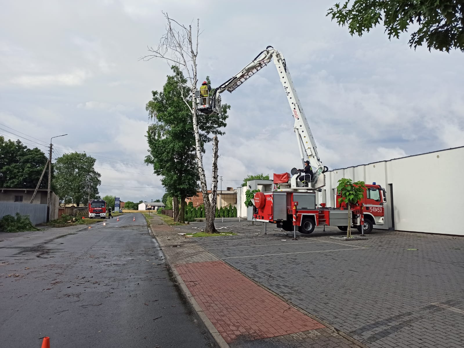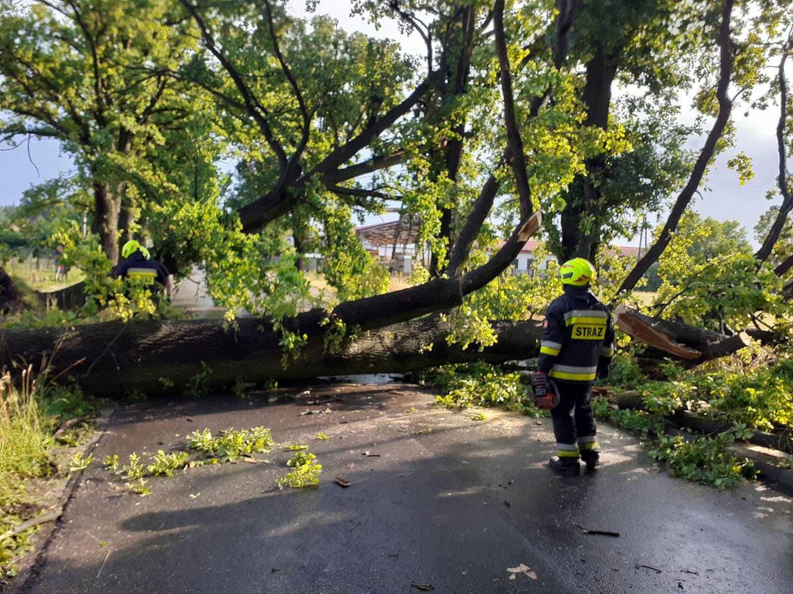 W nocy z 8 na 9 lipca 2021 roku na terenie powiatu ostrzeszowskiego do Stanowiska Kierowania Komendanta Powiatowego Państwowej Straży Pożarnej w Ostrzeszowie, zaczęły wpływać zgłoszenia na wskutek burzy oraz silnych wiatrów jakie przeszły przez powiat. Łącznie straż pożarna odnotowała 95 zdarzeń związanych z usuwaniem skutków silnie wiejącego wiatru oraz burzy. Najwięcej zdarzeń dotyczyło usuwania powalonych drzew na drogę oraz zwisających konarów. Odnotowaliśmy również 3 zgłoszenia, gdzie doszło do zalania posesji a także piwnic w budynkach mieszkalnych. Powalone drzewa zerwały 8 linii energetycznych, jedno z nich uszkodziło samochód osobowy.