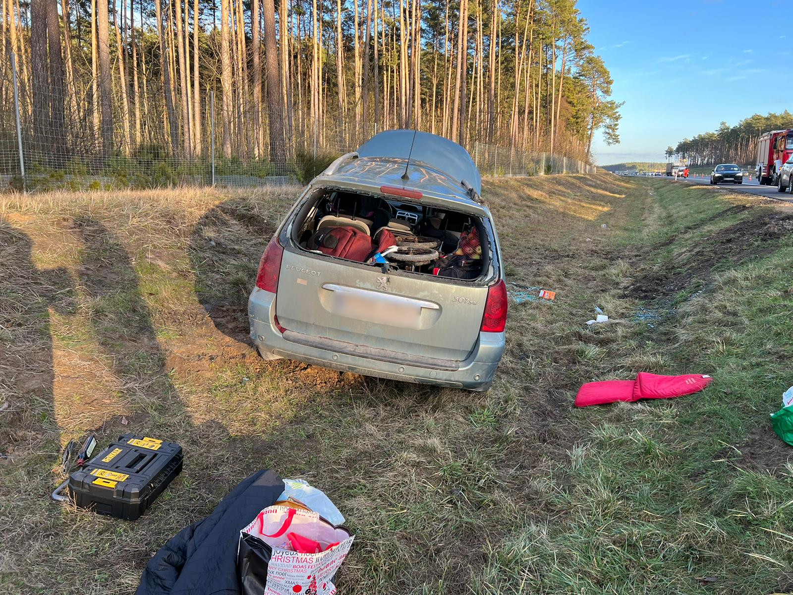 Po dotarciu na miejsce zdarzenia pierwszych zastępów stwierdzono, że samochód osobowy którym podróżowały 4 osoby wypadł z jezdni i znajdował się w przydrożnym rowie. Osoby podróżujące pojazdem opuściły go o własnych siłach przed przybyciem służb.