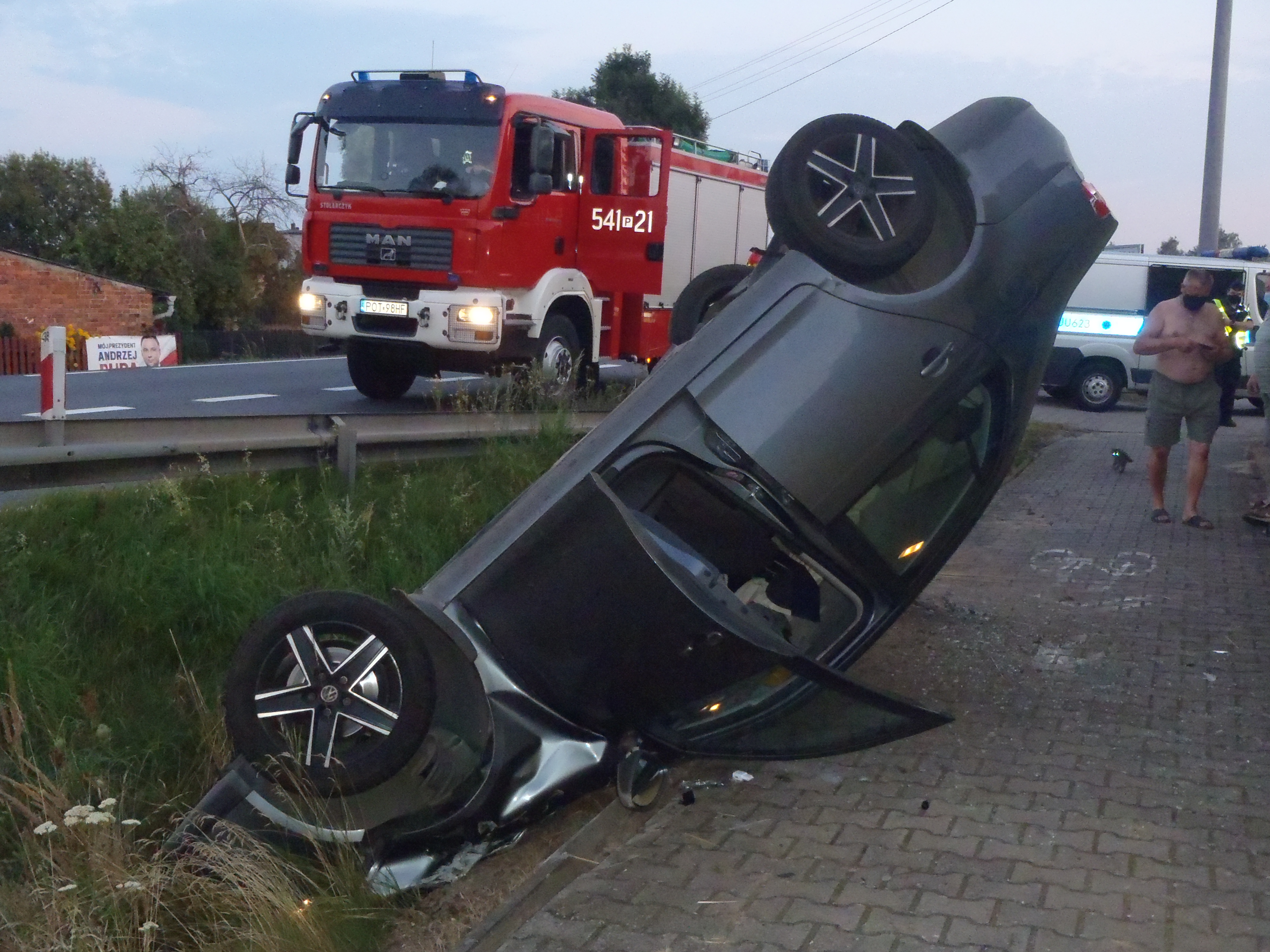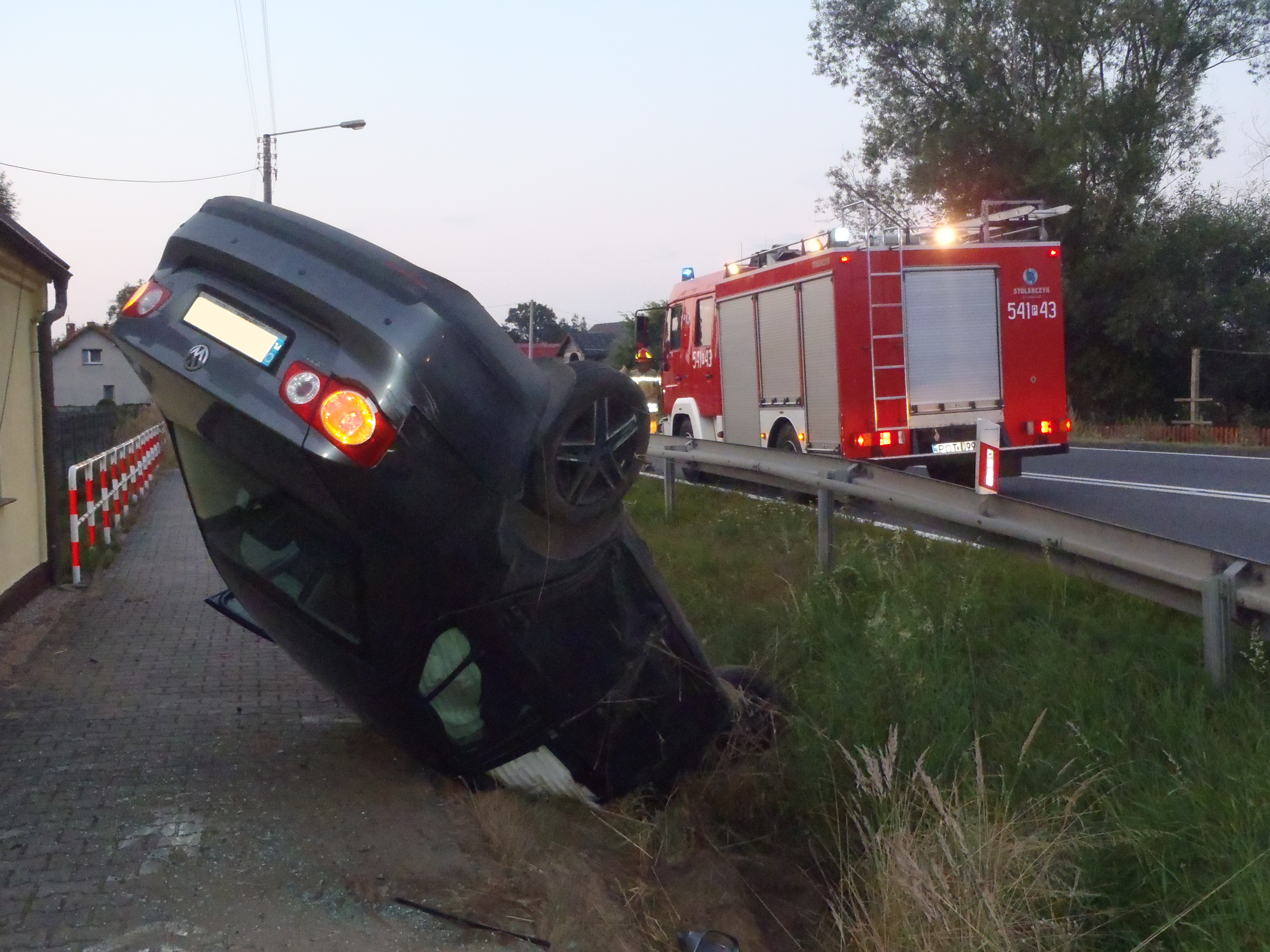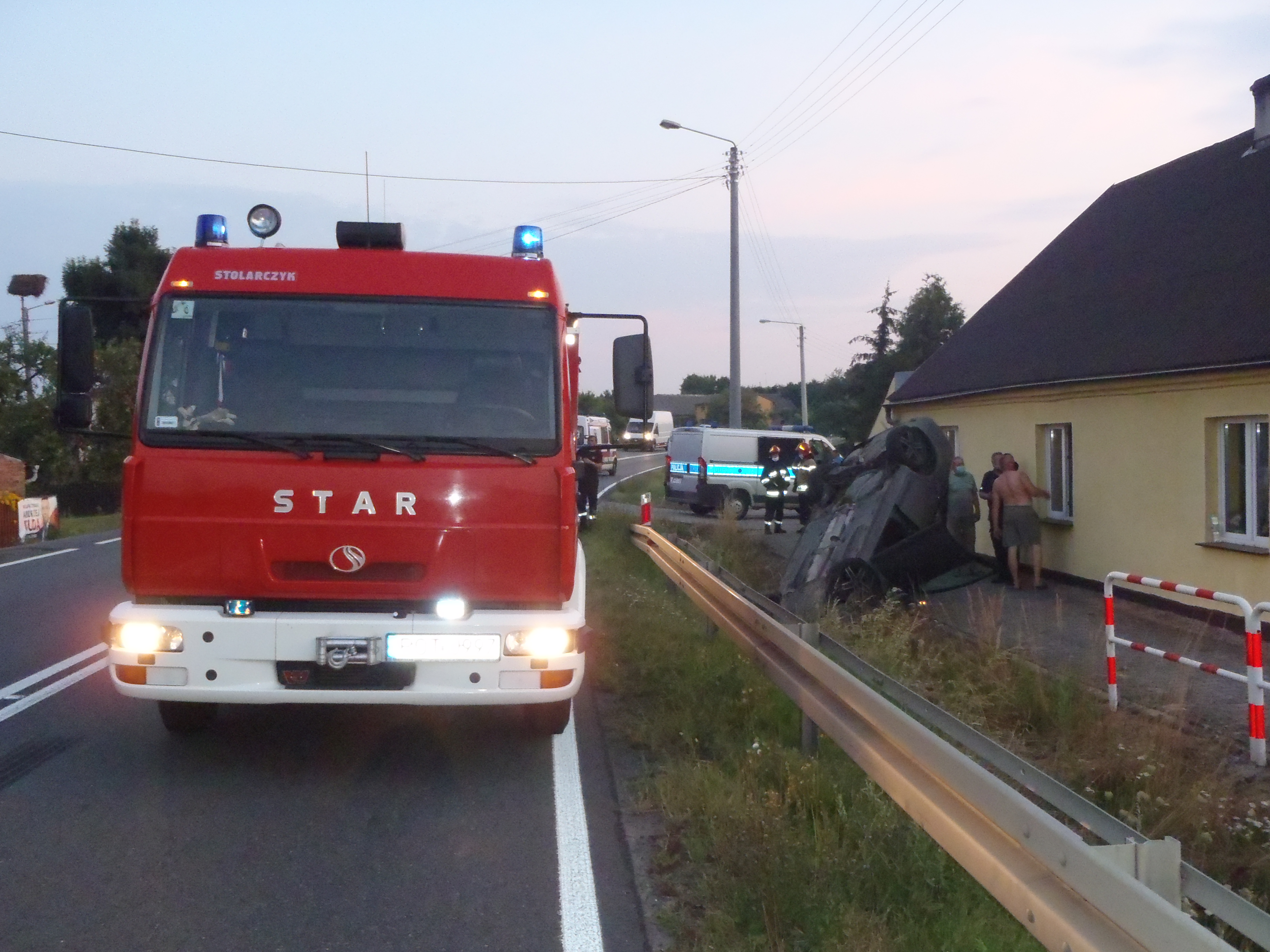 Po dojeździe na miejsce zdarzenia zastaliśmy samochód osobowy znajdujący się na dachu poza drogą w rowie. Samochodem osobowym podróżowała jedna osoba, która opuściła pojazd o własnych siłach. Na miejscu zdarzenia był już zespól ratownictwa medycznego, który po udzieleniu pomocy medycznej zabrał osobę poszkodowaną do szpitala. Nasze działania polegały na zabezpieczeniu miejsca zdarzenia oraz pomocy policji w kierowaniu ruchem pojazdów.