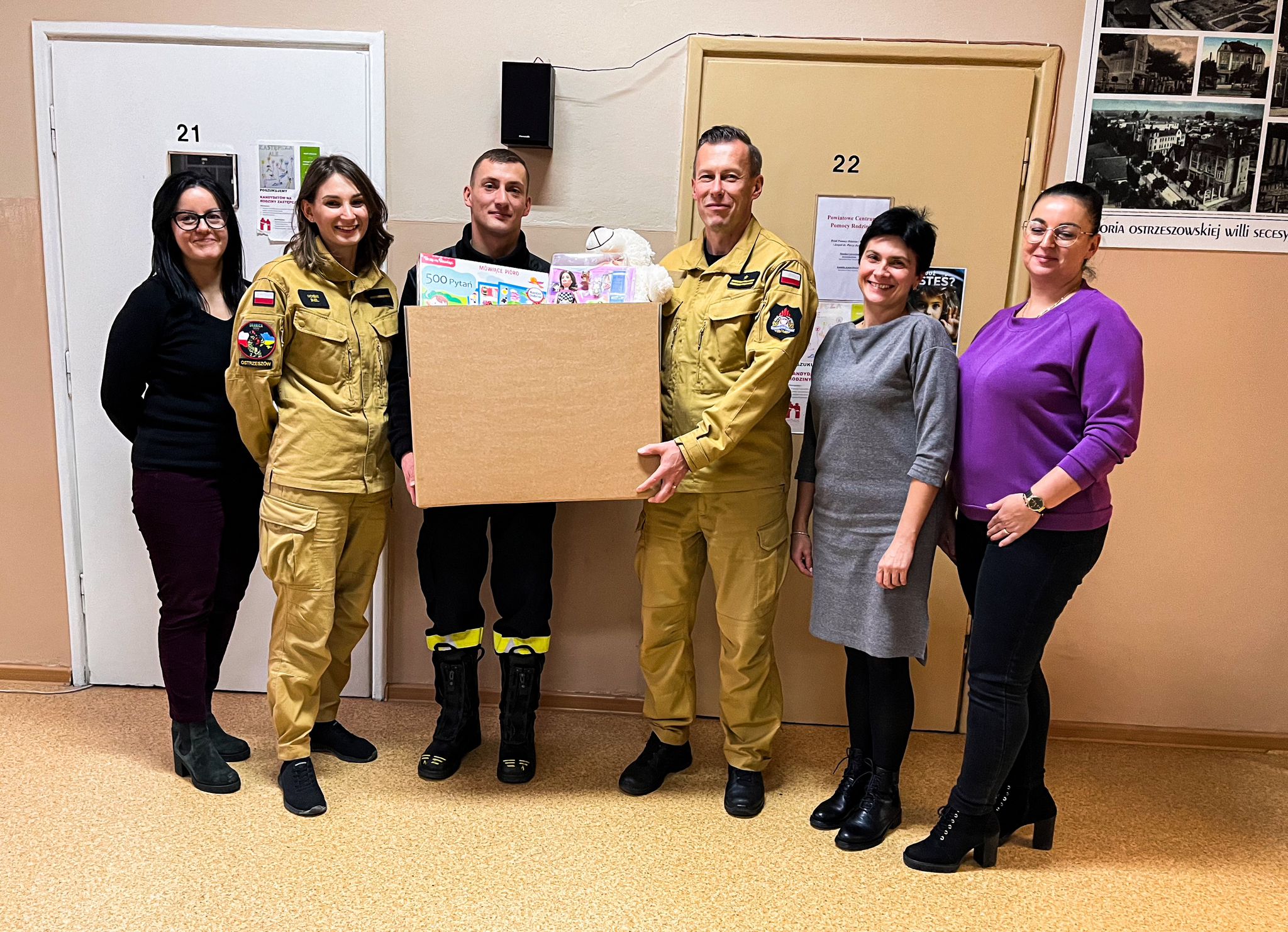 Strażacy oprócz realizacji swoich ustawowych obowiązków związanych z gaszeniem pożarów oraz usuwaniem skutków innych miejscowych zagrożeń, postanowili czynnie włączyć się do cennej akcji społecznej organizowanej przez Powiatowe Centrum Pomocy Rodzinie (PCPR) w Ostrzeszowie. 24 listopada 2023 roku delegacja funkcjonariuszy Komendy Powiatowej Państwowej Straży Pożarnej w Ostrzeszowie dostarczyła świąteczne dary do siedziby PCPRu w Ostrzeszowie. W grudniu zostanie zorganizowane spotkanie świąteczne, na którym dzieci z rodzin zastępczych zostaną obdarowane upominkami.