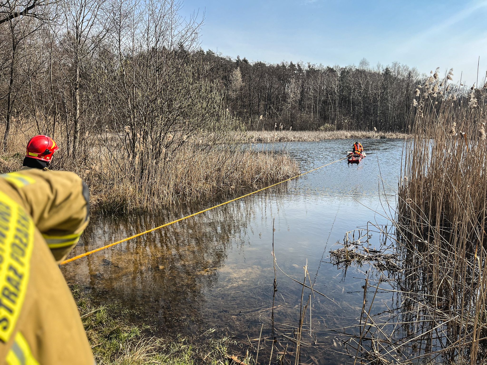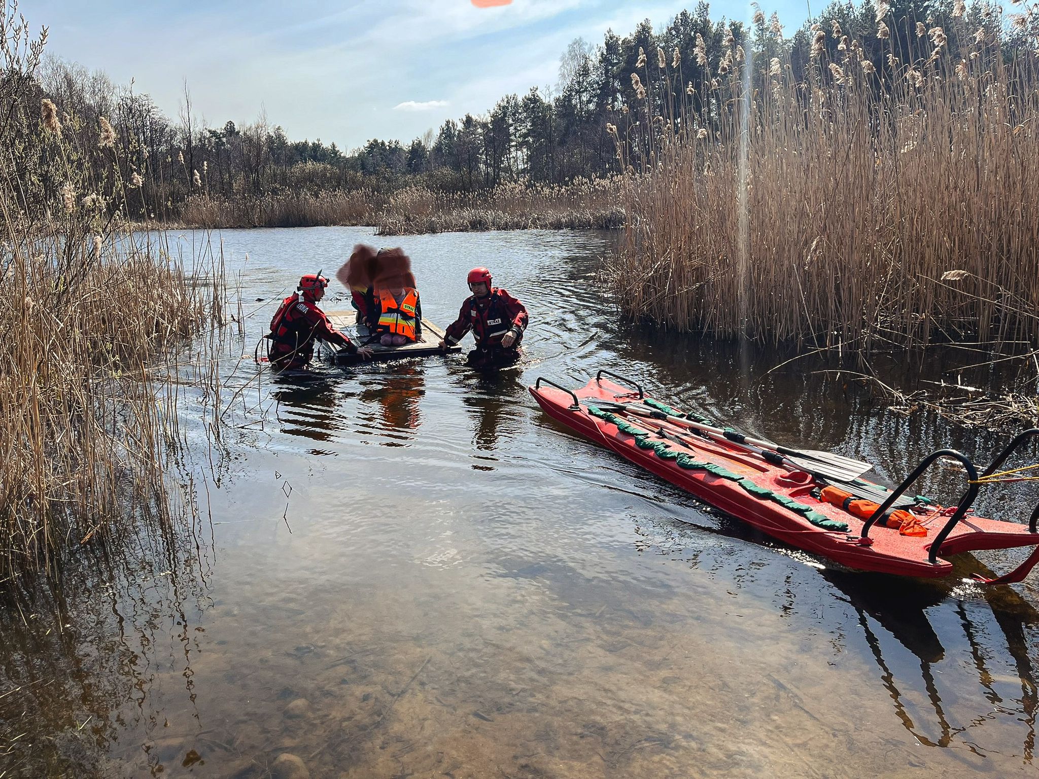 Na miejsce zdarzenia zostały zadysponowane dwa zastępy z JRG Ostrzeszów z łodzią ratowniczą oraz Specjalistyczna Grupa Ratownictwa Wodno-Nurkowego z JRG 2 Konin. Po dojeździe jednostki ochrony przeciwpożarowej zastali dryfującą tratwę na wodzie w odległości około 80 metrów od linii brzegowej z dziećmi w wieku 5, 7 i 11 lat oraz z jedną osobę dorosłą. Strażacy ubrani w skafandry wypornościowe przy pomocy sprzętu pływającego weszli do zbiornika wodnego w celu ewakuacji osób w niebezpieczeństwie na brzeg. Na szczęście nikt nie ucierpiał w zdarzeniu.