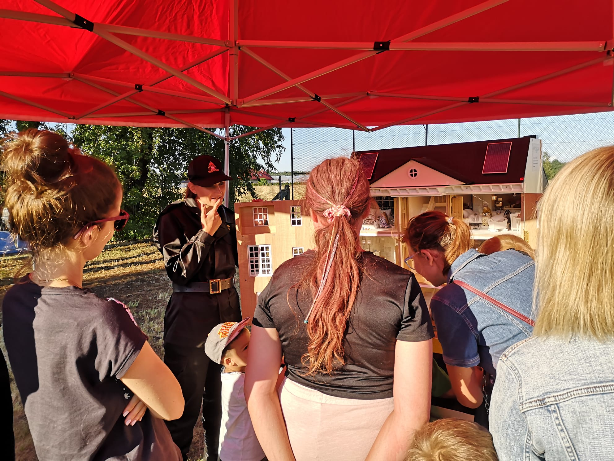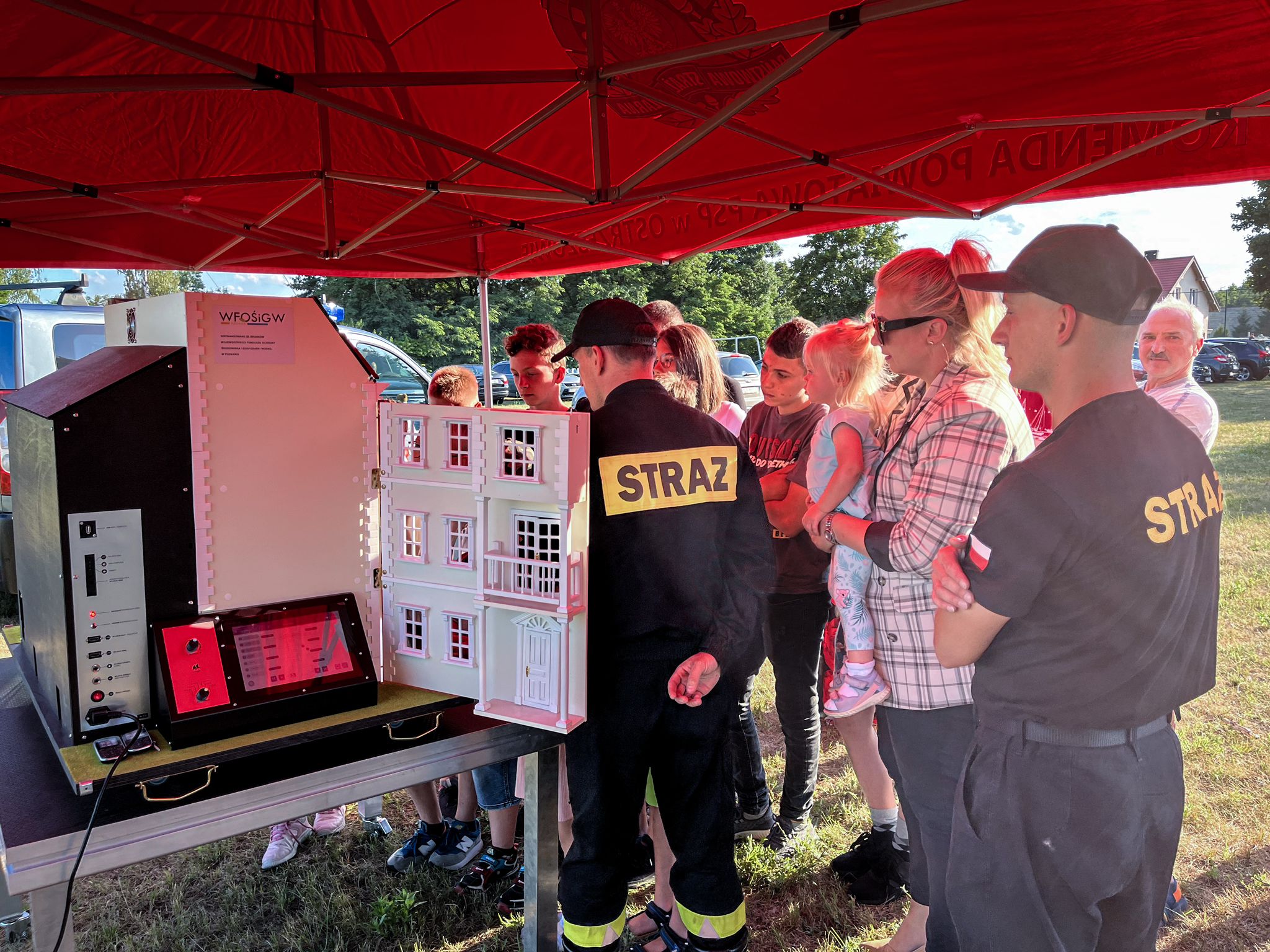 Na stoisku PSP zaprezentowano mobilny symulator zagrożeń pożarowych domu jednorodzinnego, który służy do edukacji dzieci i młodzieży. Podczas pokazu zasymulowano niebezpieczne sytuacje mogące wystąpić w pomieszczeniach, takich jak: kuchnia, łazienka, pokój dziecięcy, sypialnia, salon oraz kotłownia. Za pomocą efektów dźwiękowych i świetlnych oraz wydobywającego się sztucznego dymu w sposób realny odtworzono mogące wystąpić zagrożenia.