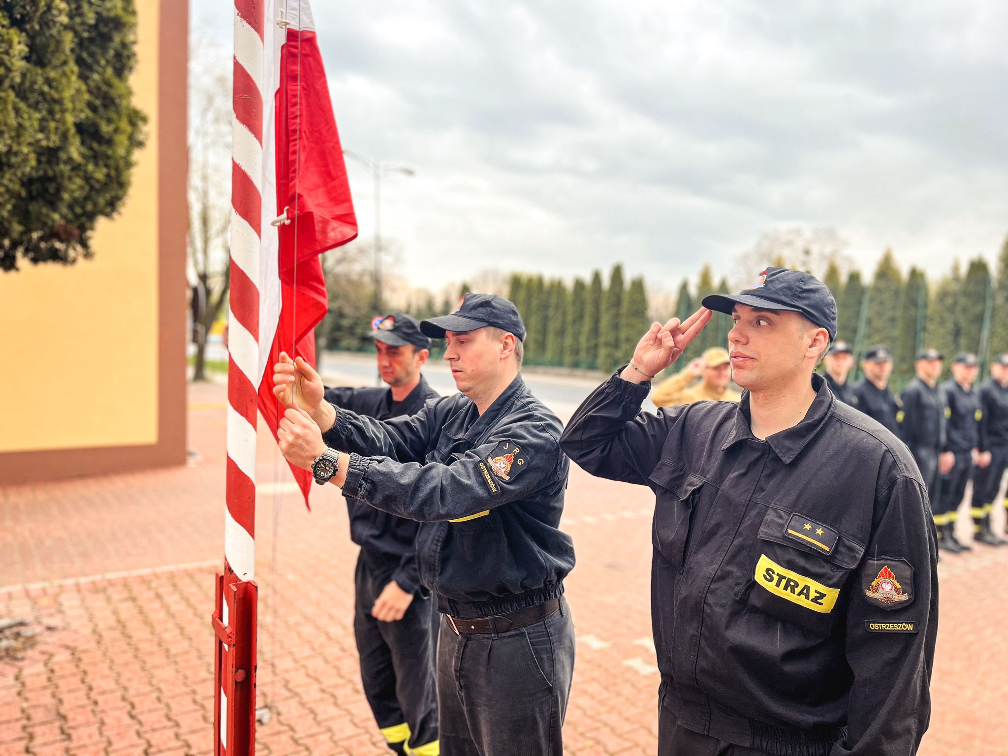 Z okazji Dnia Flagi Rzeczypospolitej Polskiej 2 maja 2023 roku miało miejsce uroczyste podniesienie flagi państwowej oraz odśpiewanie hymnu Mazurka Dąbrowskiego w Komendzie Powiatowej Państwowej Straży Pożarnej w Ostrzeszowie.