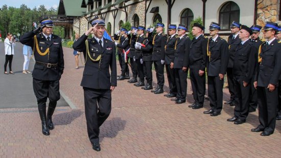 Komendant Powiatowy Państwowej Straży Pożarnej w Ostrzeszowie, starszy brygadier Tomasz Mak przywitał przybyłych gości w osobach: