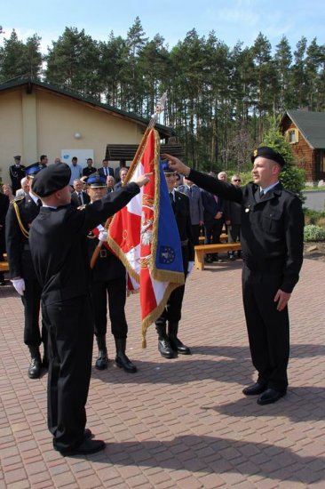 Bardzo istotnym wydarzeniem podczas uroczystości było złożenie ślubowania przez funkcjonariuszy, którzy rozpoczynają służbę w ostrzeszowskiej komendzie. Paweł Kuna oraz Tomasz Duszyński z dumą powtarzali za Komendantem Powiatowym st. bryg. Tomaszem Makiem słowa roty strażackiego ślubowania składając je na sztandar.