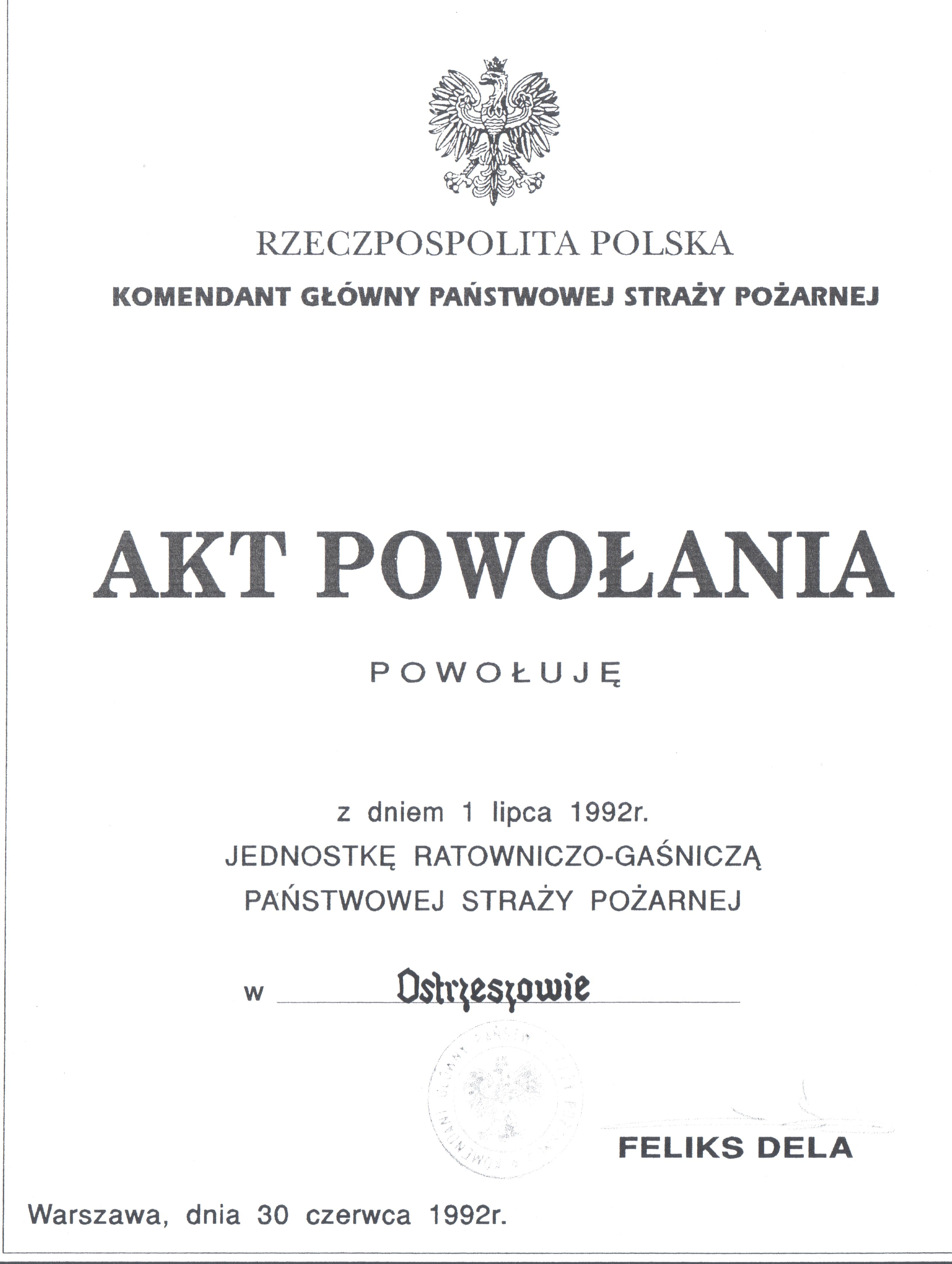 Jednostka Ratowniczo – Gaśnicza Państwowej Straży Pożarnej w Ostrzeszowie, to komórka organizacyjna Komendy Powiatowej Państwowej Straży Pożarnej w Ostrzeszowie, wyposażona w specjalistyczny sprzęt i powołana do walki z pożarami, klęskami żywiołowymi i innymi miejscowymi zagrożeniami. Została powołana 1 lipca 1992 roku.
