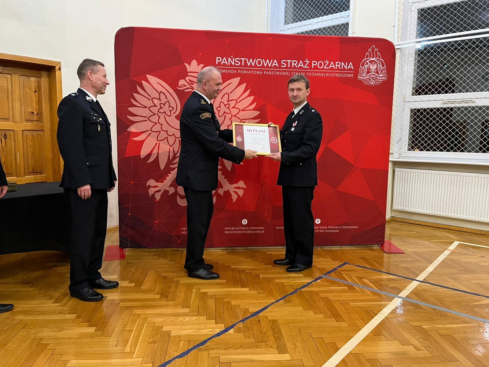 Podczas spotkania Komendant Powiatowy Państwowej Straży Pożarnej w Ostrzeszowie st. bryg. Piotr Mazurkiewicz podkreślił znaczenie współpracy i zaangażowania funkcjonariuszy PSP, druhów ochotniczych straży pożarnych oraz podmiotów wspierających działania ratownicze.
