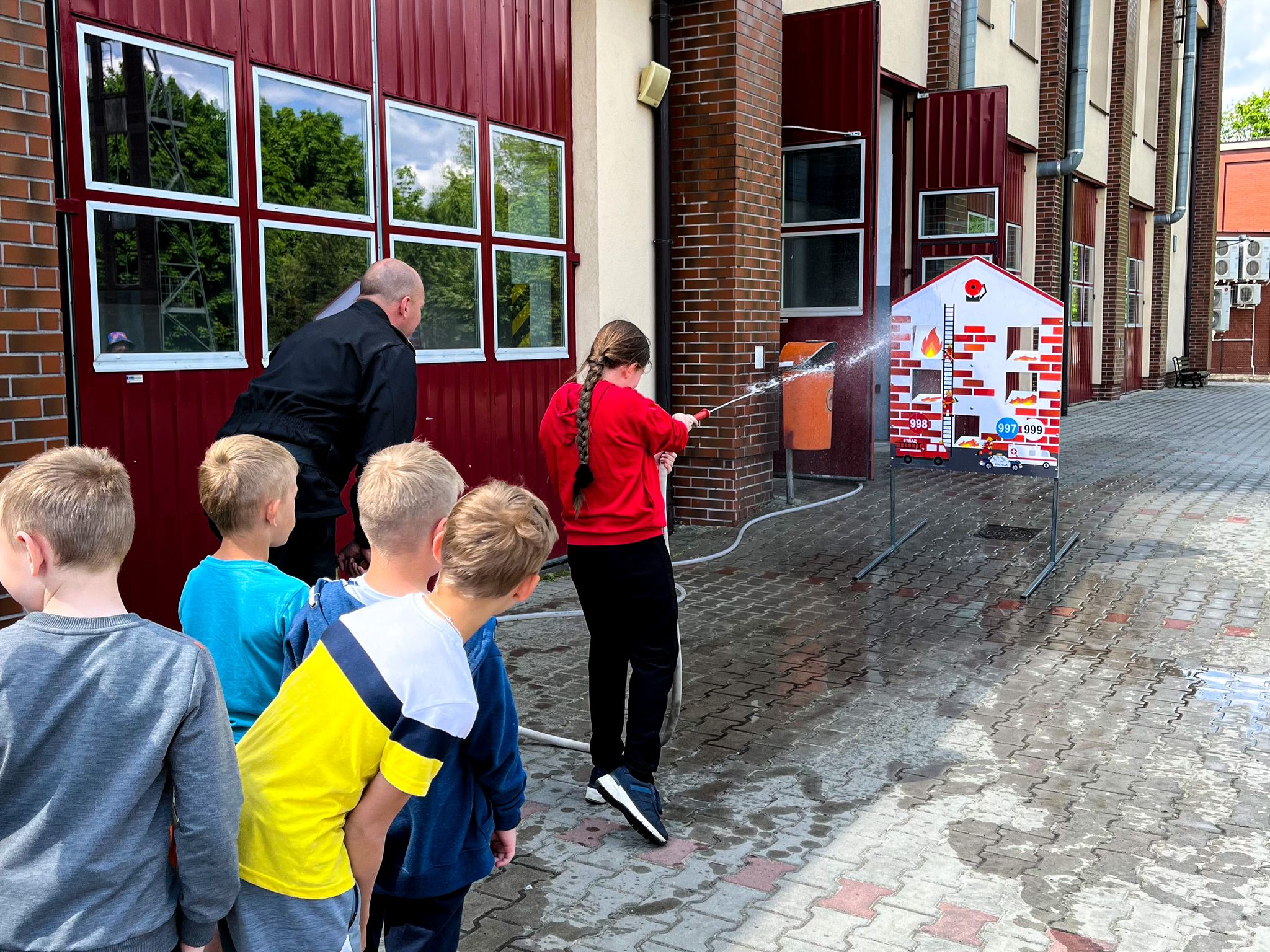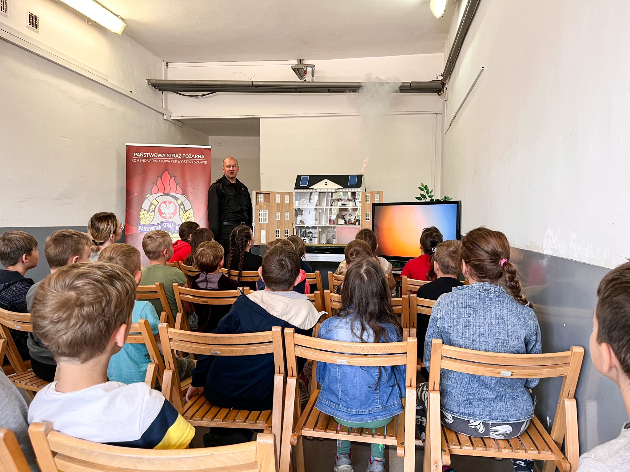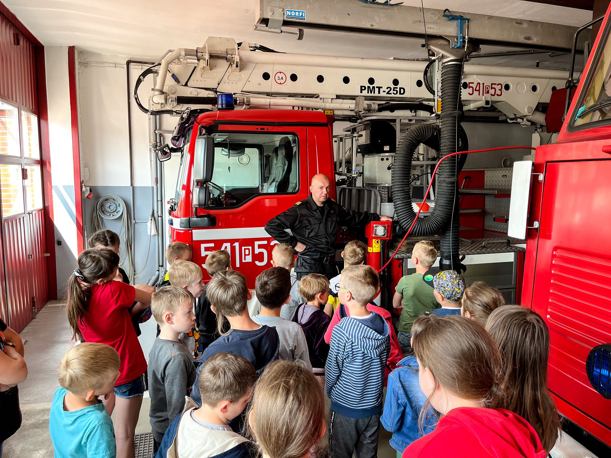 Wycieczkę po strażnicy rozpoczęto krótkim wstępem, opowiadając czym zajmuje się straż pożarna oraz jak zachować się podczas niebezpieczeństwa i zagrożeń pożarowych. Zaprezentowano również Mobilny Symulator Zagrożeń Pożarowych budynku jednorodzinnego, który pokazał jak powstają pożary w domach. Następnie dzieci mogły z bliska obejrzeć oraz zapoznać się z wyposażeniem, jakim dysponuje Jednostka Ratowniczo-Gaśnicza. Przez chwilę wszyscy uczestnicy wycieczki mogli poczuć się jak strażacy, zakładając umundurowanie specjalne czy hełm strażacki. Dzieci odwiedziły również Stanowisko Kierowania Komendanta Powiatowego i dowiedziały się w jakich okolicznościach można wzywać straż pożarną. Na zakończenie wycieczki uczniowie mogli spróbować sił przy gaszeniu hydronetką makiety budynku mieszkalnego, co sprawiło im największą radość.