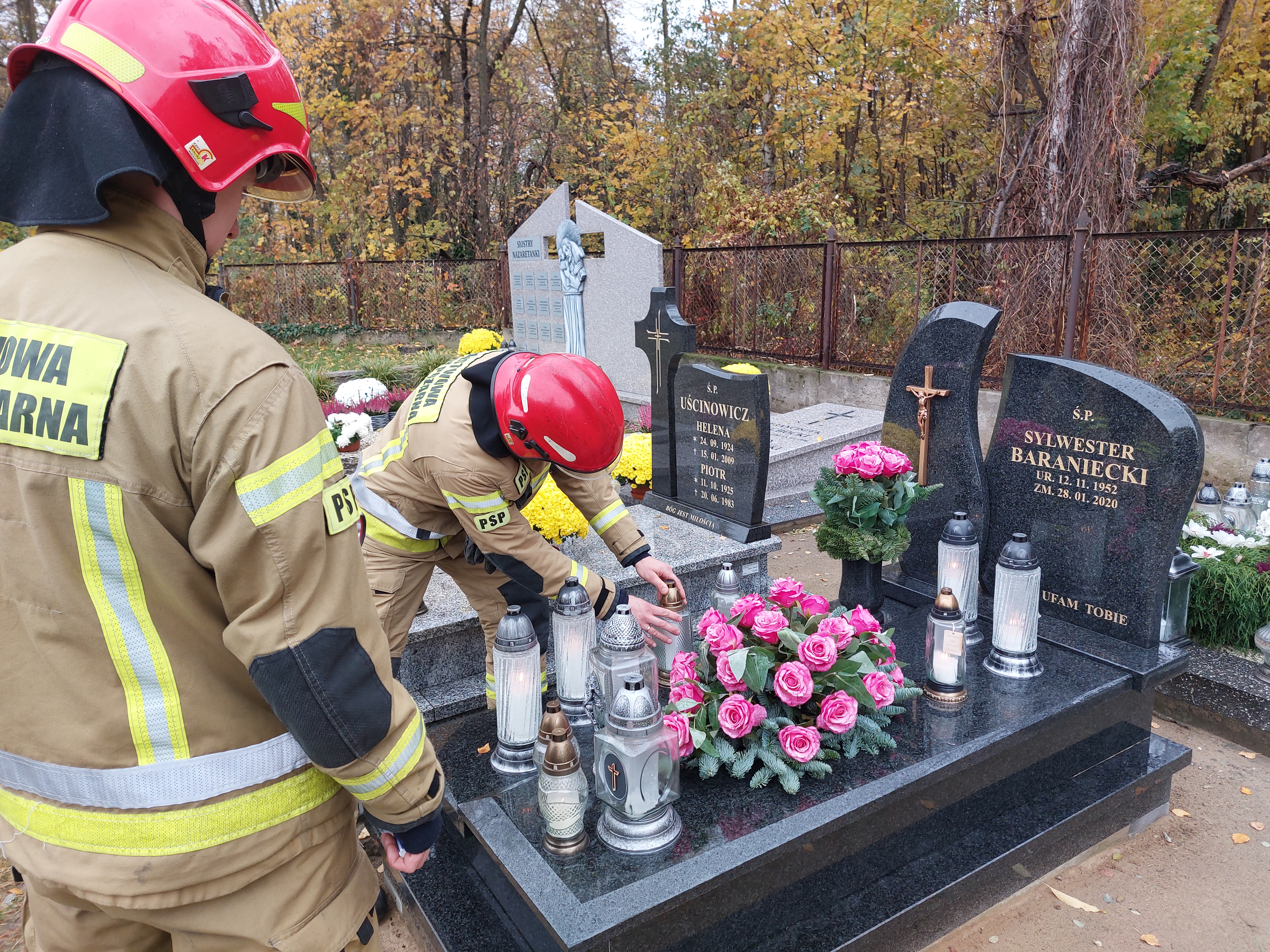 Początek listopada to czas, kiedy odwiedzamy groby nie tylko bliskich ale rownież zmarłych przyjaciół, znajomych, współpracowników. Ta ostatnia myśl motywowała strażaków, którzy zapalili symboliczne znicze na grobach funkcjonariuszy naszej komendy, którzy odeszli w minionych miesiącach czy latach. Wspominając bliskich, nie zapomnieliśmy o tych z którymi wiele przeżyliśmy a nie ma już ich wśród nas.