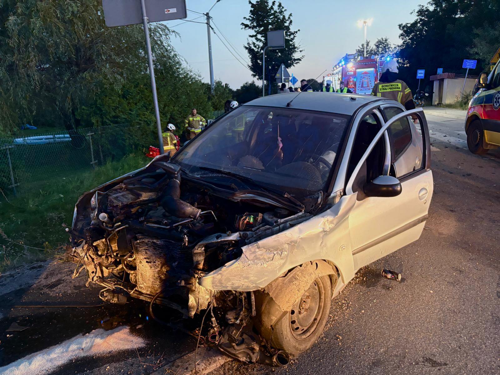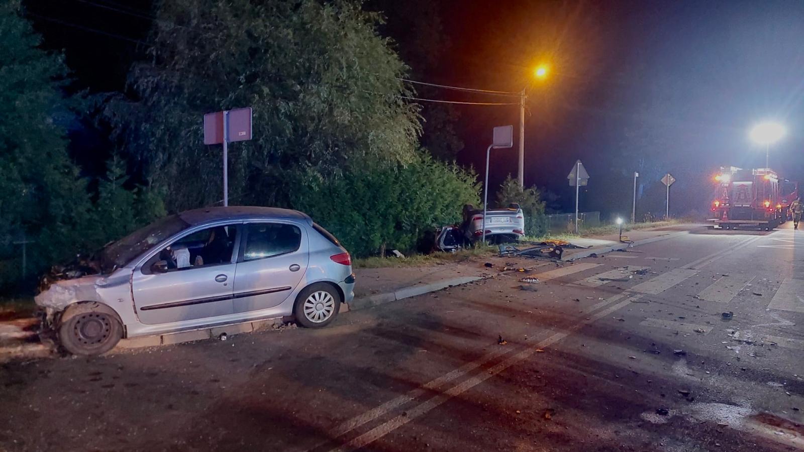 Pierwsze przybyłe na miejsce zdarzenia jednostki ochrony przeciwpożarowej zastały dwa samochody osobowe po zderzeniu. Ustalono, że pojazdami podróżowało łącznie dziewięć osób.