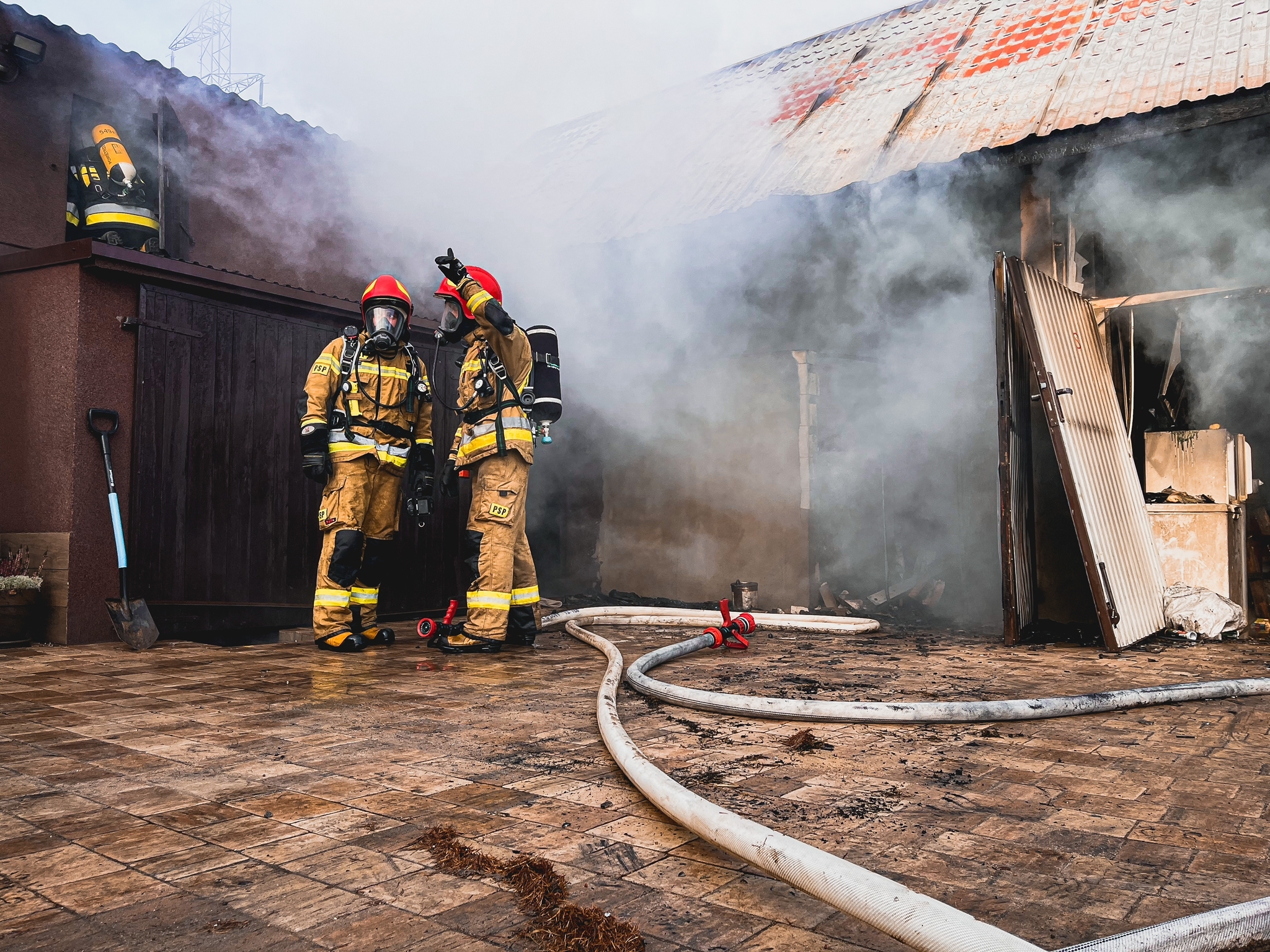 Działania straży pożarnej polegały na podaniu jednego prądu wody w obronie na budynek mieszkalny, który przylegał do palącego się budynku gospodarczego. Po przyjeździe kolejnych jednostek straży pożarnej ratownicy zabezpieczeni w sprzęt ochrony dróg oddechowych, podali łącznie 3 prądy wody w natarciu na palący się obiekt, co przyczyniło się do opanowania pożaru. W międzyczasie ewakuowali mienie nieobjęte jeszcze pożarem.