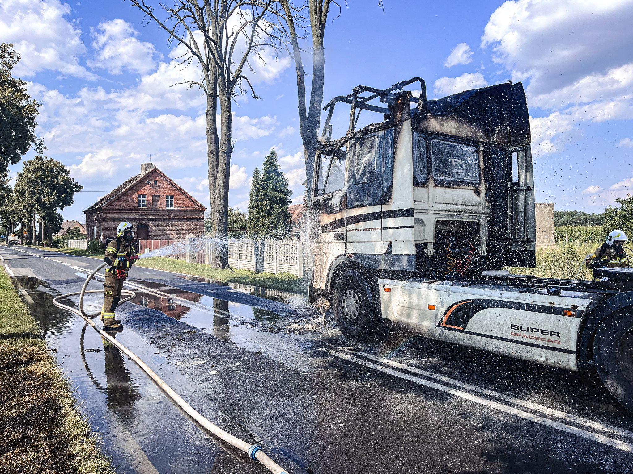 9 lipca 2024 roku o godzinie 15:39 Stanowisko Kierowania Komendanta Powiatowego Państwowej Straży Pożarnej w Ostrzeszowie otrzymało zgłoszenie o pożarze ciężarówki na drodze wojewódzkiej nr 450 w miejscowości Grabów Wójtostwo.