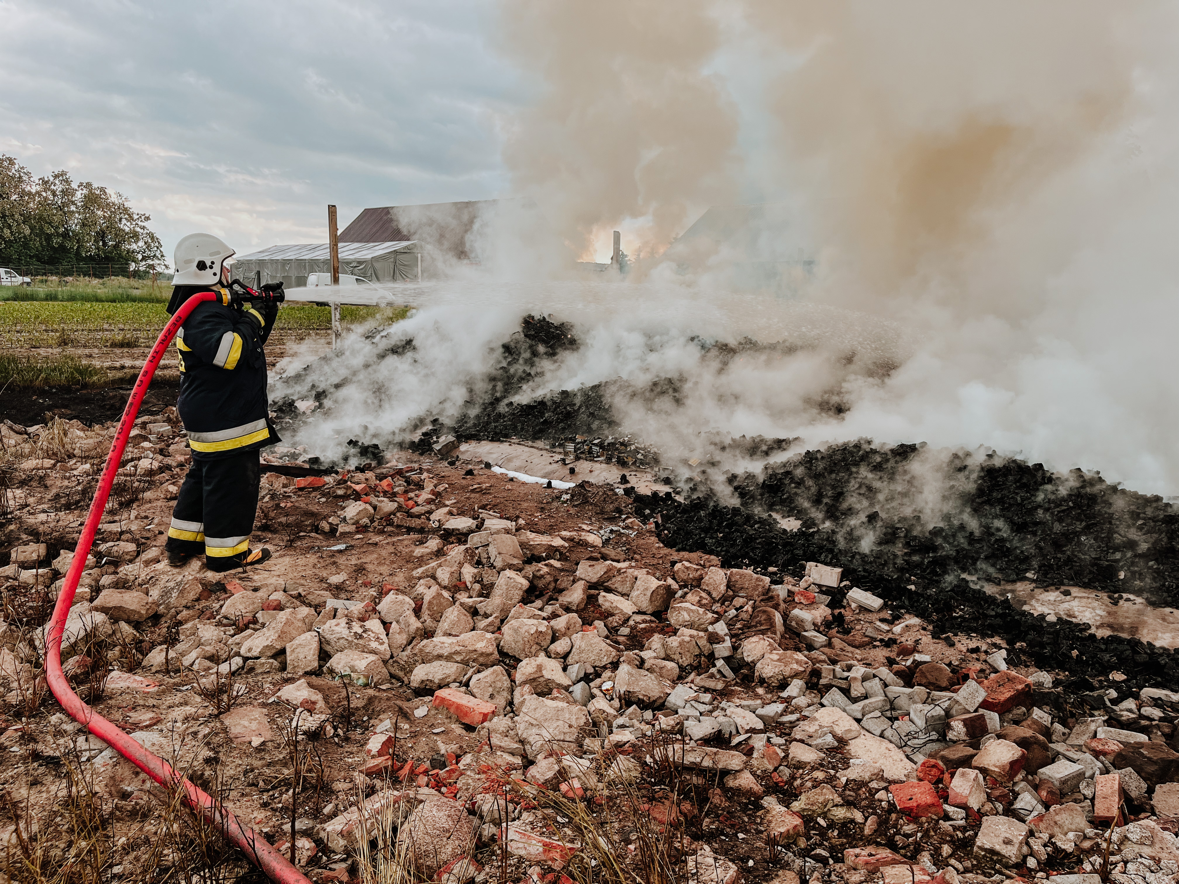 W pierwszej fazie działań przystąpiono do obrony pozostałej części składu palet oraz zagrożonych obiektów. Po dojeździe na miejsce zdarzenia kolejnych jednostek przystąpiono do gaszenia pożaru i podano łącznie 3 prądy wody. W trakcie pożaru pobierano medium do gaszenia z rzeki Prosny.