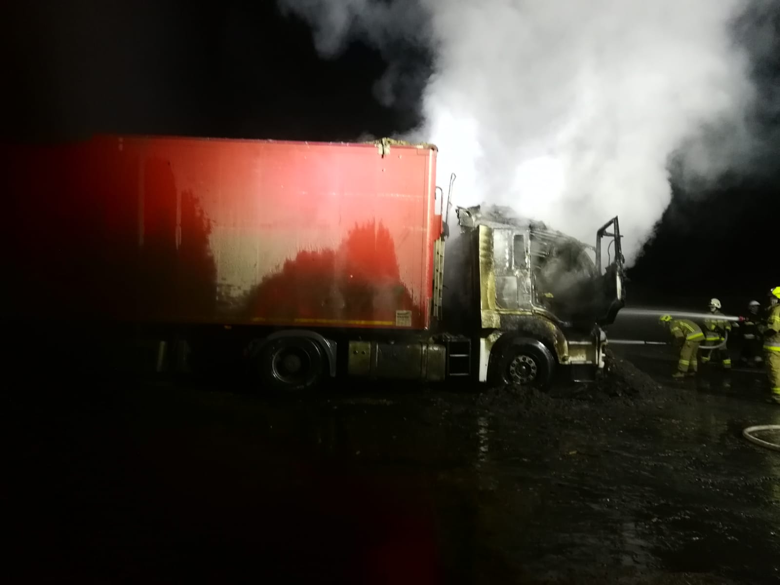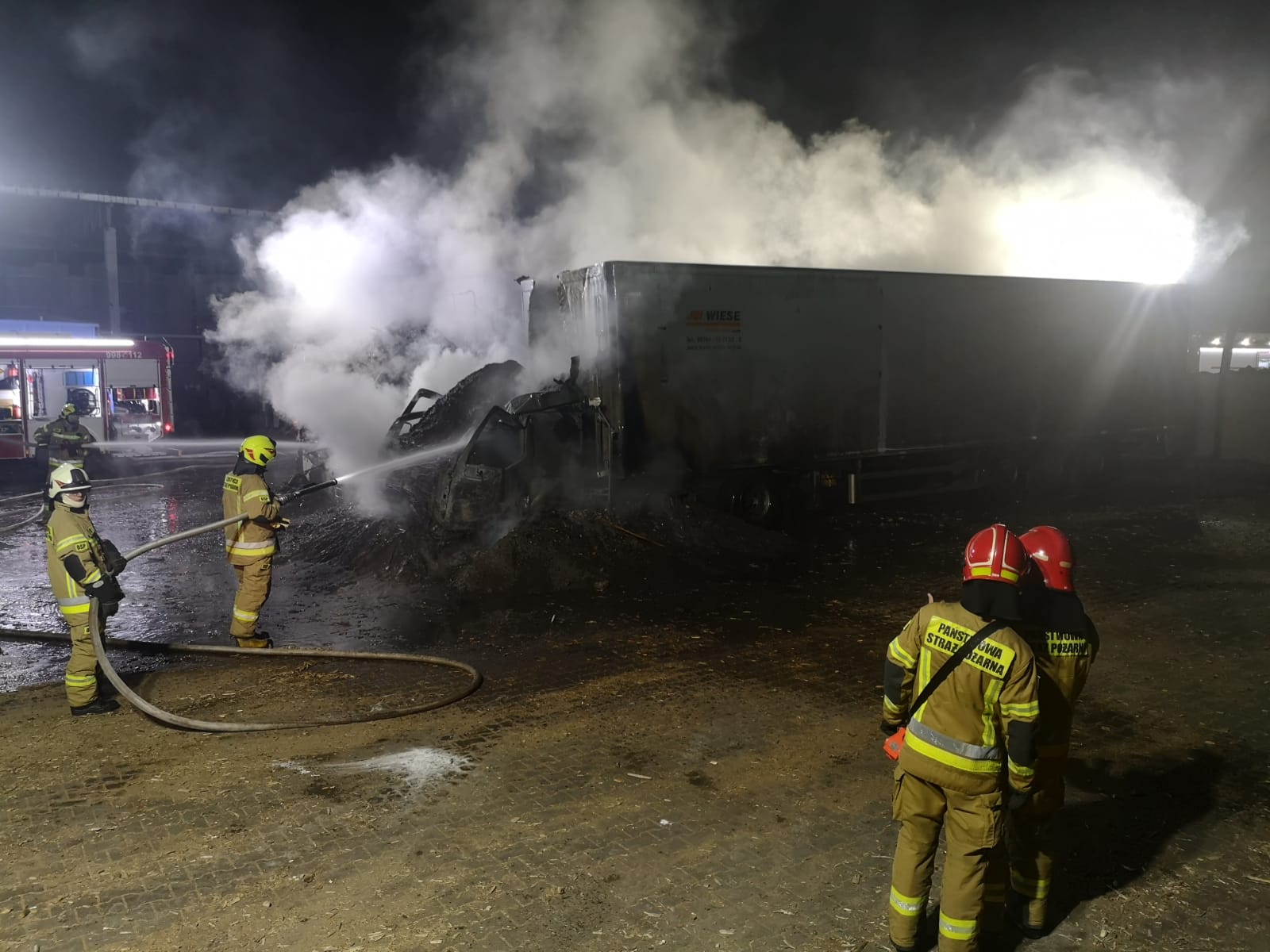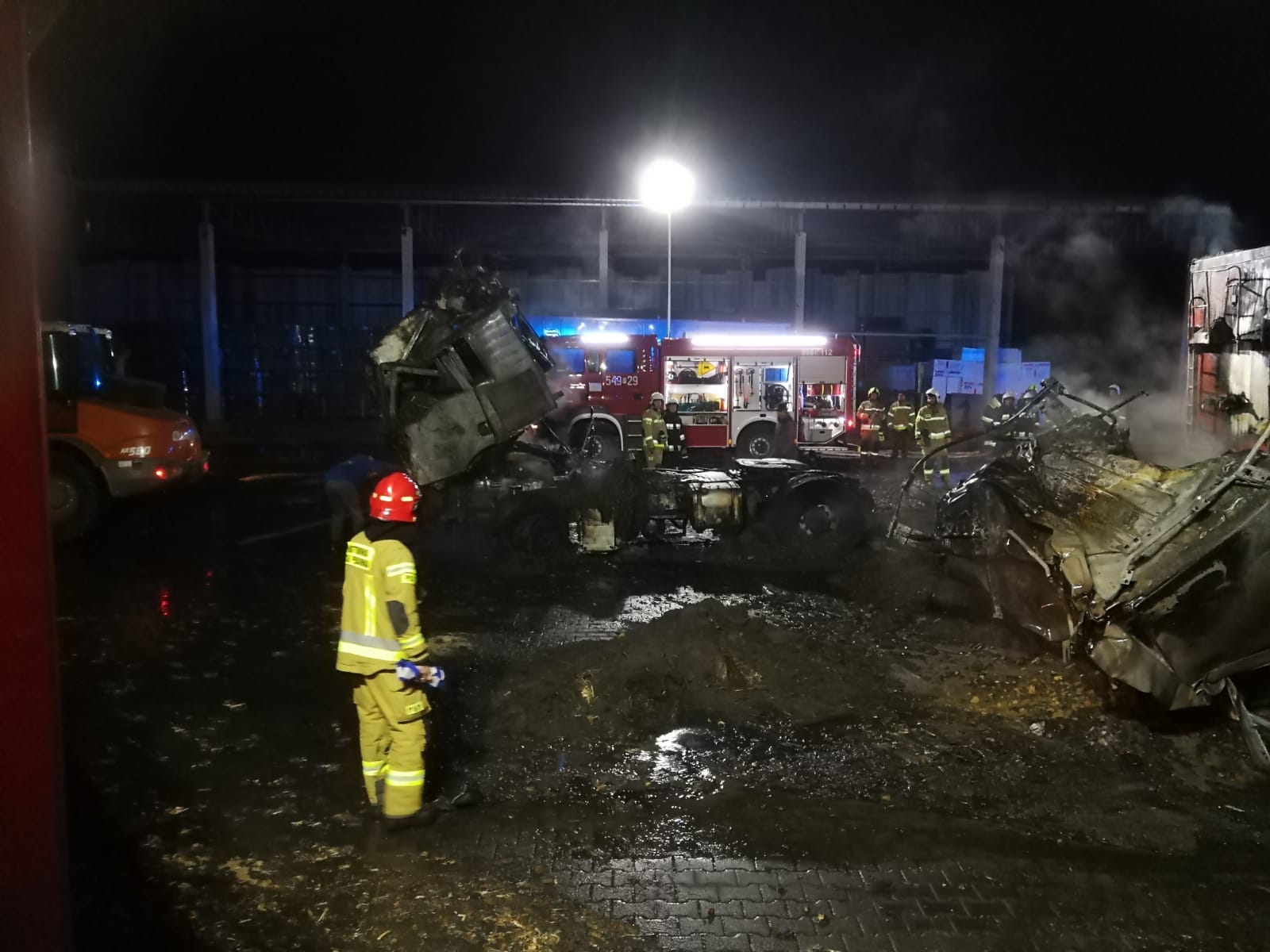 Po dojeździe na miejsce zdarzenia zastaliśmy dwa samochody ciężarowe objęte w całości pożarem.