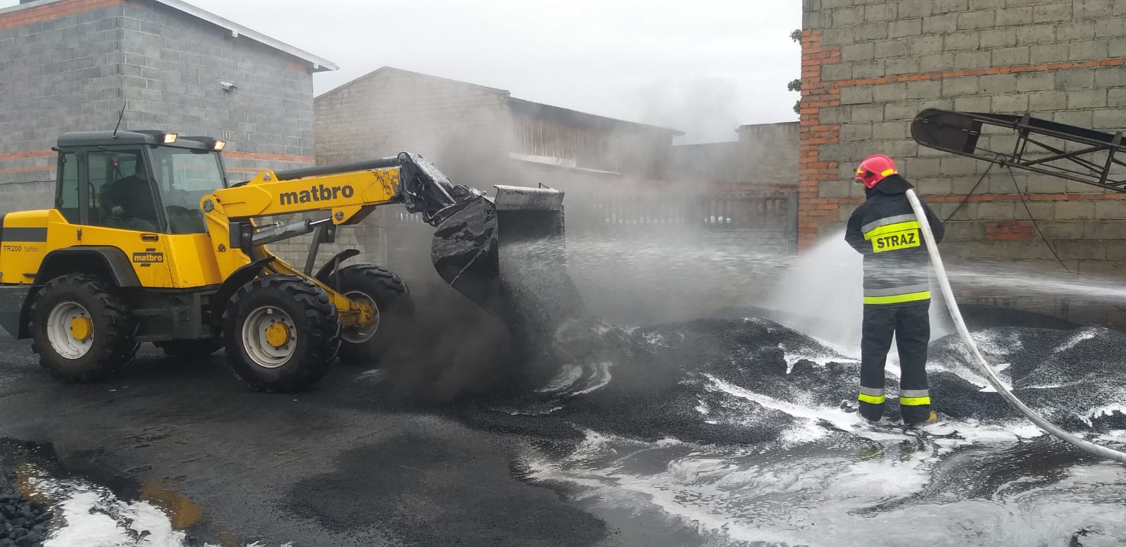 Po opanowaniu pożaru przystąpiono do wywożenia pryzmy na plac zakładu gdzie dogaszano tlący się materiał palny. Strażacy sprawdzili przyległe pomieszczenia przy wykorzystaniu kamery termowizyjnej.