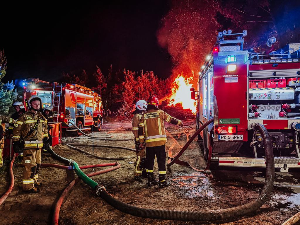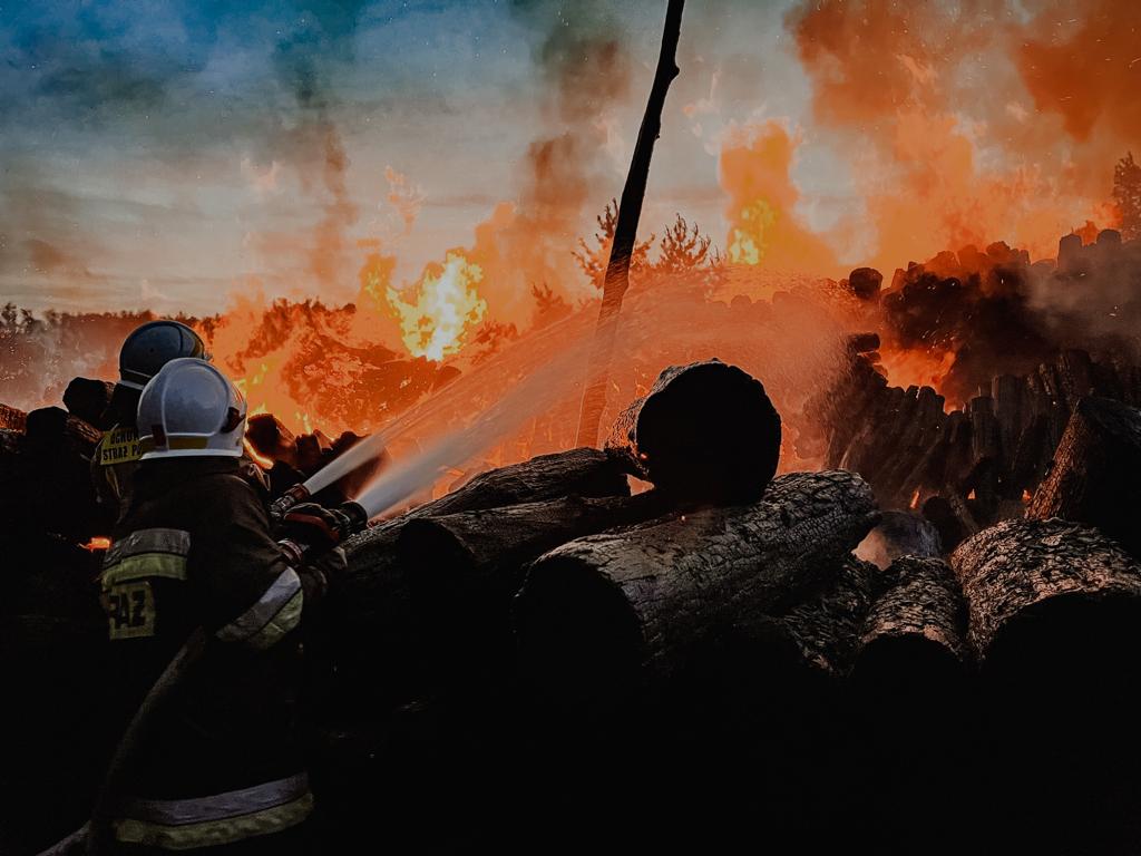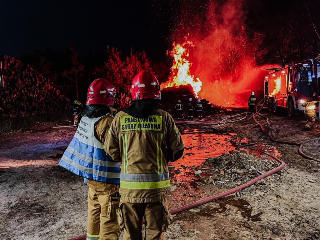Pożar składu drewna