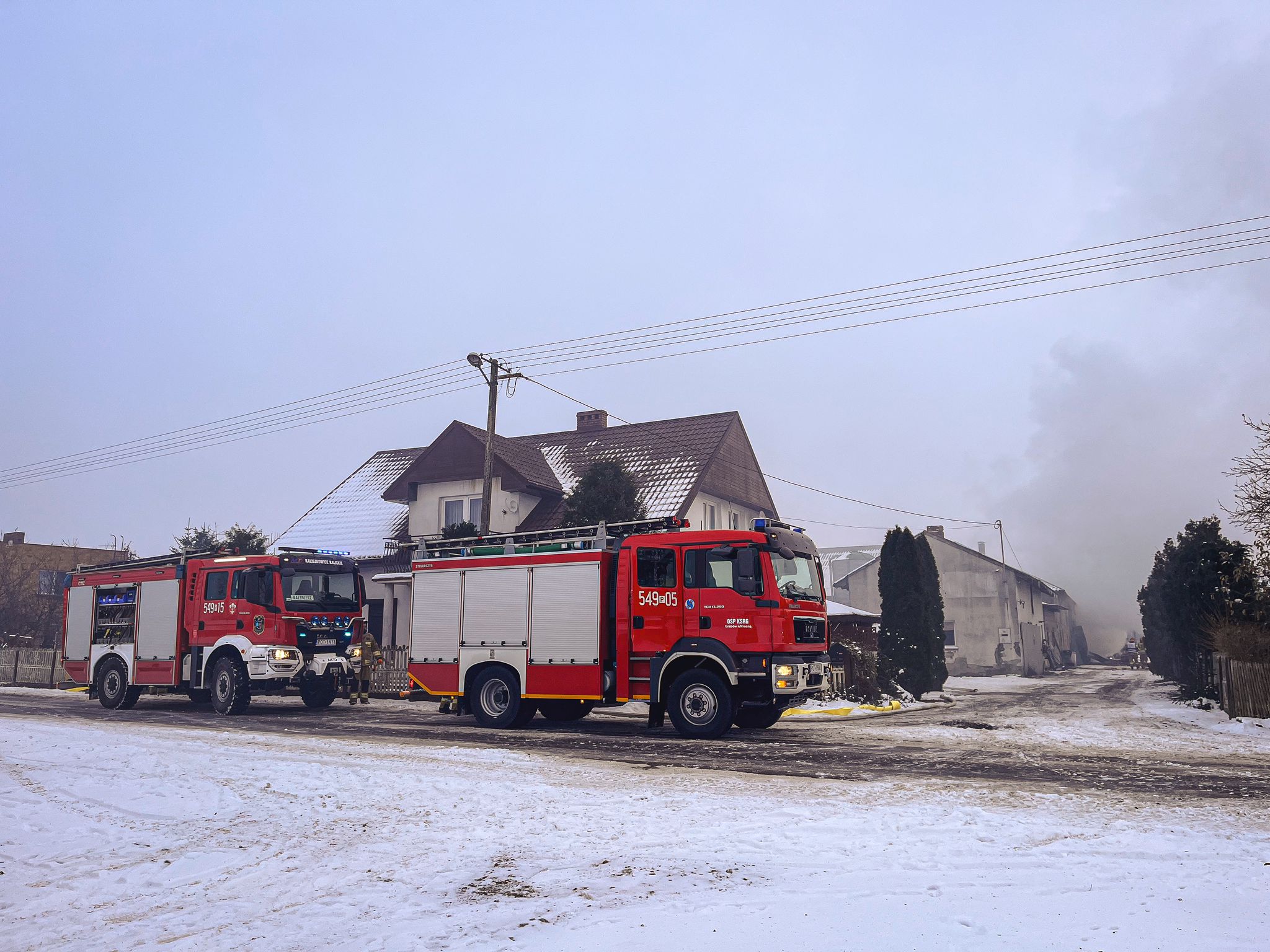 6 grudnia 2023 roku o godzinie 7:37 Stanowisko Kierowana Komendanta Powiatowego Państwowej Straży Pożarnej w Ostrzeszowie otrzymało zgłoszenie o pożarze budynku inwentarskiego w miejscowości Chlewo, gmina Grabów nad Prosną.