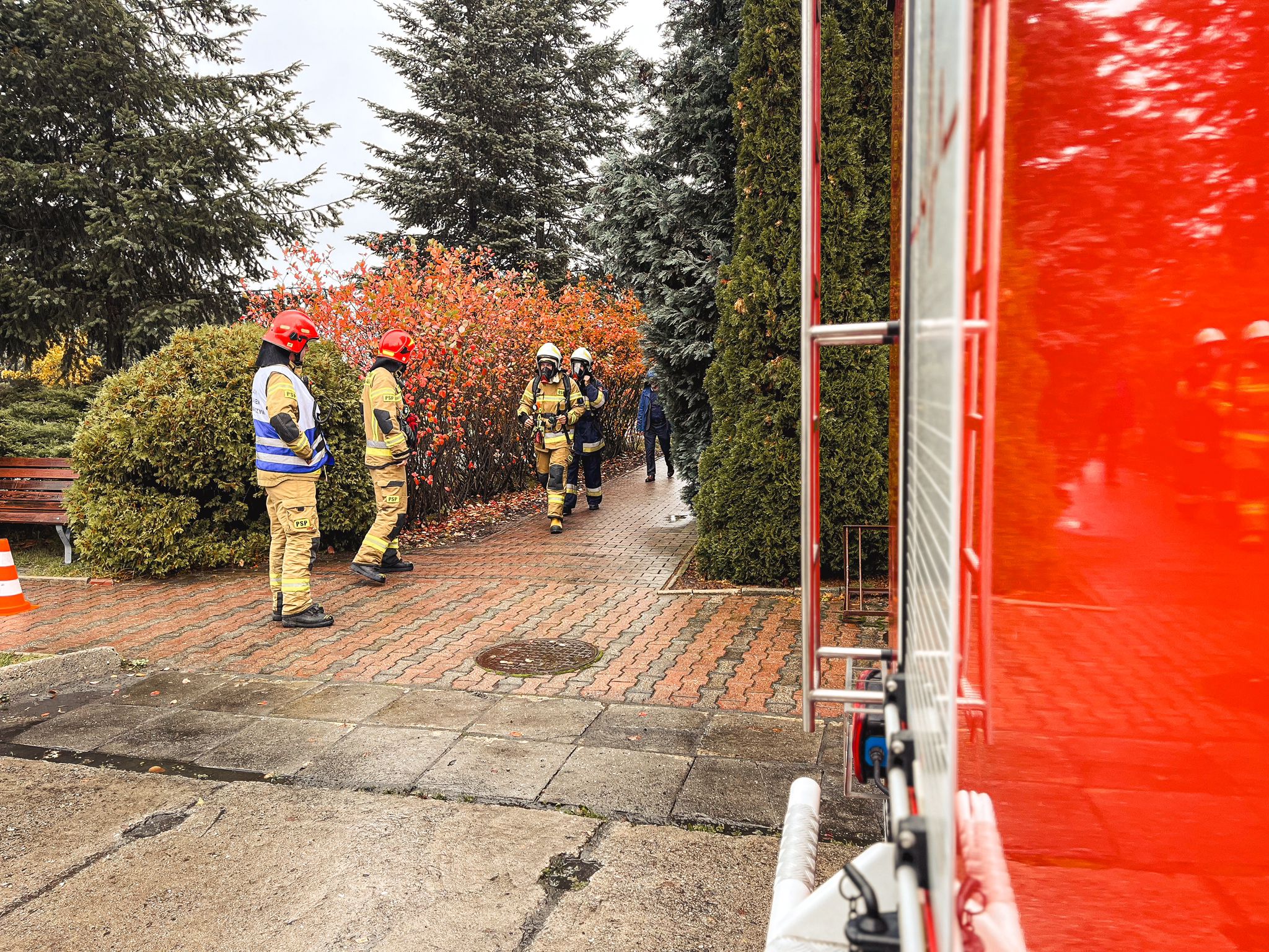 W dniu 26 października 2023 roku odbyło się praktyczne sprawdzenie ewakuacji w Zespołu Szkół nr 2 w Ostrzeszowie. Obecni na miejscu funkcjonariusze obserwowali przebieg oraz płynność ewakuacji uczniów oraz pracowników placówki. Przy tej okazji strażacy przeprowadzili ćwiczenia wchodząc do zadymionego pomieszczenia w celu zlokalizowania źródła pożaru oraz przeszukania pomieszczeń.