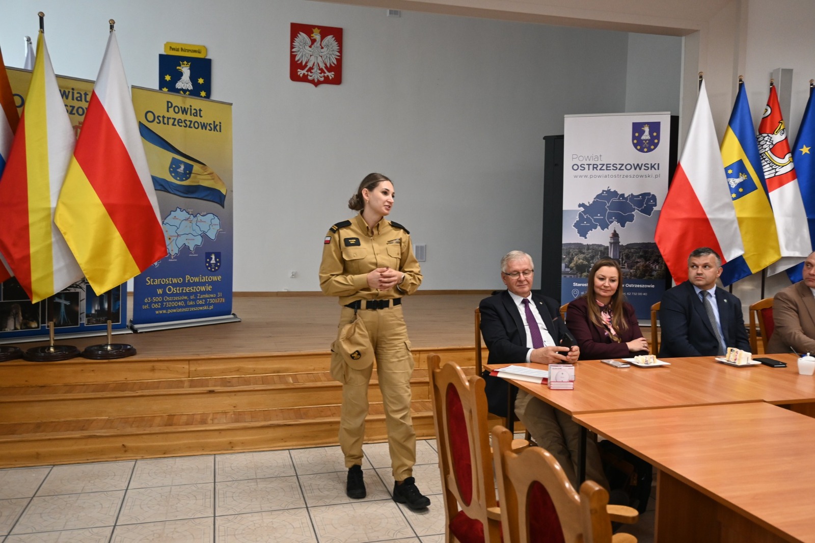 30 września 2025 roku w Starostwie Powiatowym odbyło się spotkanie Sołtysów oraz przedstawicieli lokalnych samorządów. Podczas przemówień funkcjonariusz naszej jednostki przeprowadziła krótką prelekcję na temat bezpieczeństwa pożarowego w okresie jesienno–zimowym. Spotkanie było okazją do przypomnienia najważniejszych zasad, które mogą uratować życie i zdrowie mieszkańców.
